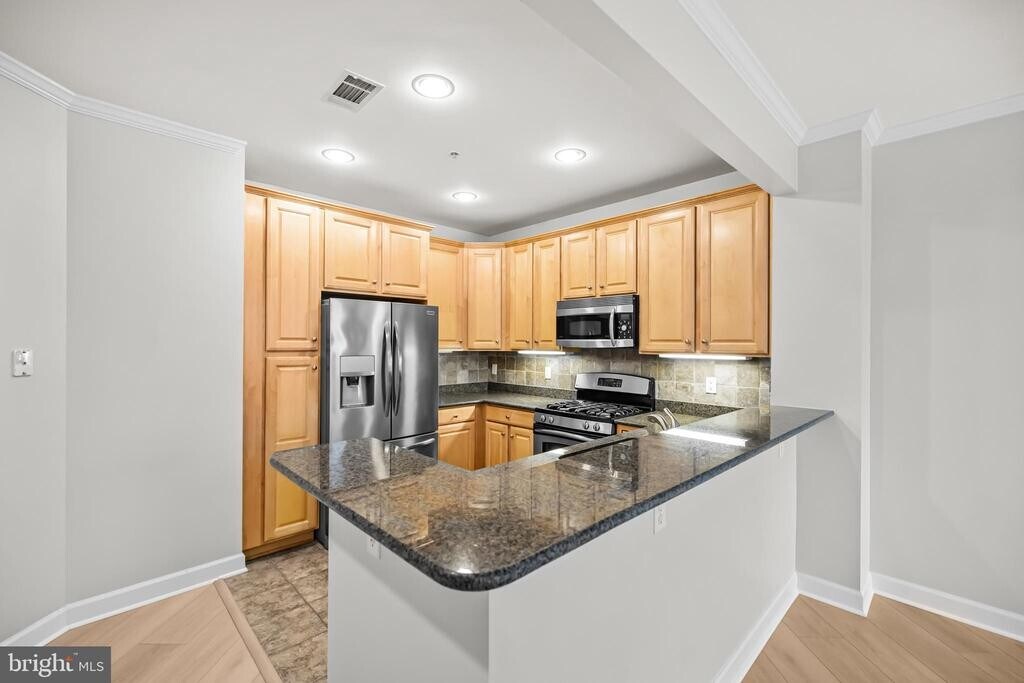 Beautiful first-floor 2 bedroom, 2 bath condo located in the highly desirable Cameron Station community. This light-filled unit features an open floor plan, high ceilings, a modern kitchen with granite countertops and stainless-steel appliances, brand new luxury vinyl floors throughout, in-unit washer/dryer, and a private patio with courtyard access. The unit comes with two parking spaces #86 & #167 in a secured underground garage. The building has its own gym and business center. The community features an outdoor pool, fitness center, and a free shuttle to Van Dorn metro station. Located Minutes from Old Town Alexandria, the Pentagon, and D.C. Convenient access to I-395, I-495, and Van Dorn Metro. Short walk to Ben Brenman Park, Harris Teeter, and local cafés. No smoking