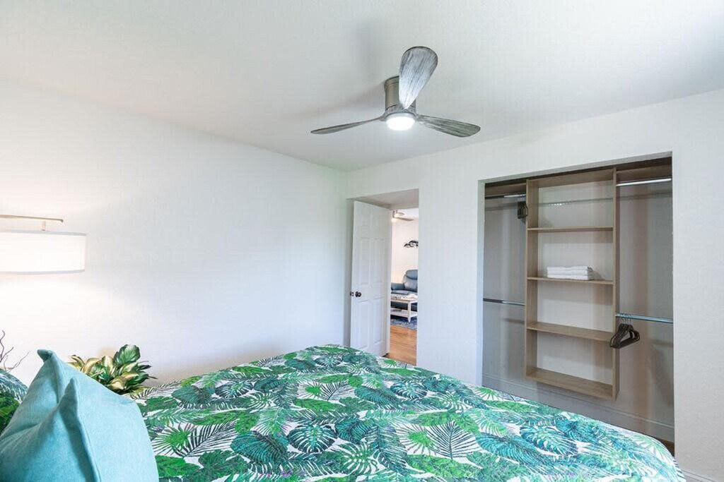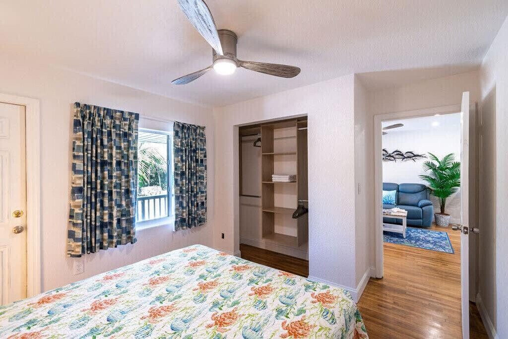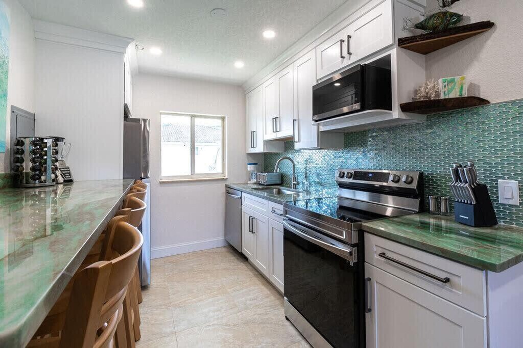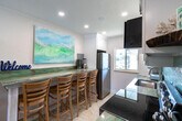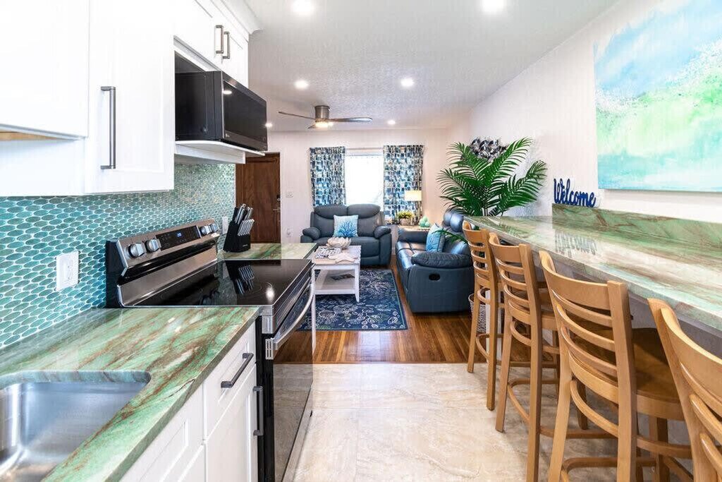 Welcome to your favorite new vacation spot at 400 South! This beautifully appointed 2-bedroom, 1-bathroom unit in our newly opened "aparthotel" is sparkling clean and ready to please. With brand new renovations, appliances, and furniture, the apartment is built to exceed expectations while providing an exceptional stay. Located immediately across the street from Orlando's closest beach and minutes south of Cape Canaveral and the famed Space Coast, it's a perfect spot for couples, friends, or families who want to play in the waves and see the sights on an unforgettable trip. Situated up a short flight of stairs on the second floor of our 8-unit "aparthotel," this unit offers a king bedroom and a queen bedroom. The apartment includes a sleek bathroom with a walk-in shower. Each bedroom provides ample closet space to stow your belongings, while the bathroom includes a vanity with extra storage space in the closet adjacent to the door. The common areas offer plenty of sunlight, highlighting beautiful features like an underwater-themed artist mural, emerald granite countertops, and brand new furniture and appliances, including a dishwasher. In the lounge area, you'll find a reclining couch to kick back and stream your favorite show on the Smart TV, while the inviting kitchen is fully stocked, with bar-style seating for four. While we love all furry friends, only dogs are allowed at this property, with a fee of $100 per pet, per stay. 400 South is a newly renovated, 8-unit "aparthotel" located just outside historic downtown Cocoa Beach. Situated on one of its popular local beachfront streets, you'll be in perfect proximity to the ocean, perfect for daytime beach sojourns or a romantic sandy sunset walk. It's a 5-minute walk to downtown, and just 50 steps to the beach from the front door! The surrounding neighborhood is beautiful, with a gated community directly across the street and million-dollar mansions all around. Located on A1A with Uber and Lyft being very prevalent in the area, the downtown area is within walking distance. To ensure a comfortable start to your stay, we provide an initial stock of essentials like paper towels, toilet paper, tissues, coffee pods, creamer, sugar, light cleaning supplies, garbage bags, sponges, dish soap, and dishwasher tabs. If you need additional supplies during your stay, please plan to replenish them as needed. Mailbox access is not available for guests. Regarding the 6 guest occupancy, we have a king and queen bed which can comfortably sleep 4 guests. We provide a trifold floor mattress to sleep one more guest. We also have a couch that can sleep 1 additional guest. Our digital locks let you arrive and check yourselves in, but we’re here if you need us. Message us on the app if you need anything during your stay. For urgent matters, call the number provided. [SI]