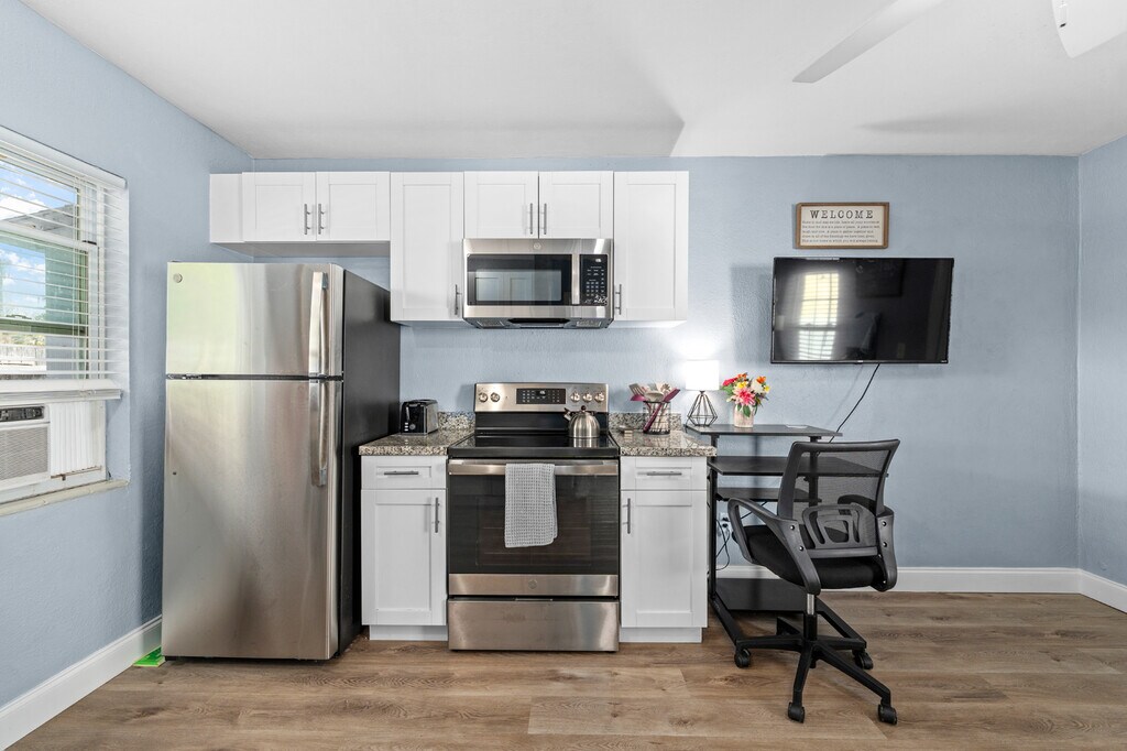 Modern 1-Bedroom | All Utilities + Wi-Fi Included Charming 1-Bedroom Home in Clearwater Pet-Friendly & Full of Comfort! Discover the perfect blend of comfort and convenience in this cozy 1-bedroom, 1-bathroom home. At 500 square feet, this inviting space is thoughtfully designed to make the most of every corner, creating a warm and welcoming retreat you'll love coming home to. What You'll Love About This Home: Bright and Open Layout: The living space feels airy and cheerful, perfect for relaxing or entertaining. Modern lighting and timeless hardwood floors add a touch of elegance. Well-Equipped Kitchen: Enjoy preparing meals with reliable appliances (stove/oven and refrigerator) and sleek granite countertops. FREE On-Site Washer and Dryer: Laundry is a breeze with the convenience of in-home facilities. Pet-Friendly: Your furry friends are welcome here! We have a FENCED-IN YARD for you and your furbaby! Plus, nearby Crest Lake Park with dog play areas, Dog Beaches nearby (Honeymoon Island) and many other parks and green spaces make it easy to keep them happy and active. Relaxation Meets Convenience: Step out onto your private covered patio, the ideal spot for your morning coffee or unwinding after a long day. Nestled on a peaceful street in the desirable Clearwater area, while also being just 2 miles from Downtown Clearwater and 4 miles from Clearwater Beach Island, this home offers a serene setting while keeping you close to all the best Clearwater has to offer. A Connected Community: Whether you're strolling through nearby neighborhoods or exploring the vibrant shops, restaurants, and cultural events in Clearwater, Belleair, and Dunedin, you'll quickly feel at home here. Ready to make this charming space yours? Reach out today and schedule a tour your next chapter starts here!