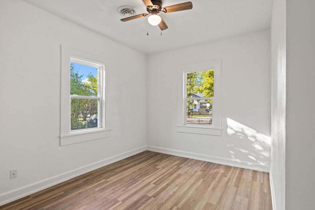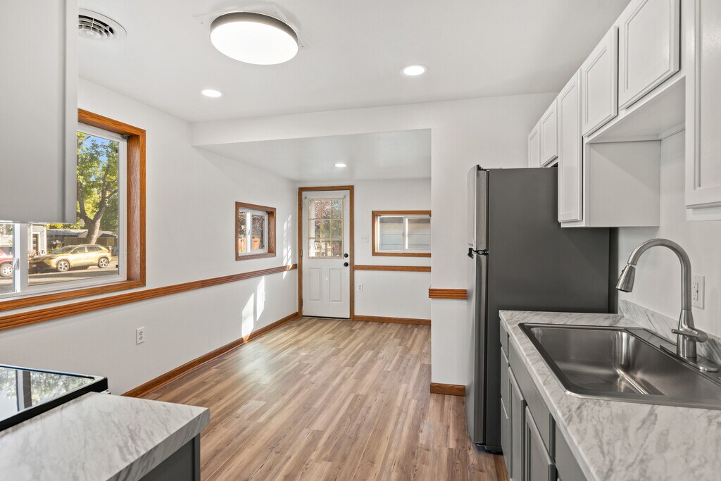 Live comfortably at 402 Burlington Ave—a stylish, move-in-ready 2-bed, 1-bath single-level home in one of Billings’ most walkable neighborhoods. Inside, you’ll love the high ceilings, tons of natural light, brand-new LVP flooring, fresh paint, modern lighting, and ceiling fans throughout. The fully updated kitchen features stainless steel appliances and clean, modern finishes, while the refreshed bathroom includes a new vanity, toilet, and shower/tub. Step outside to enjoy two outdoor spaces—a charming front porch and a private back deck tucked into a fenced corner lot. A detached garage adds convenience and extra storage. Stay comfortable year-round with a new furnace and central A/C (2022). Low-maintenance, thoughtfully updated, and close to parks, schools, shopping, and dining, this home checks all the boxes. Available now—homes like this don’t last. Schedule your showing today.