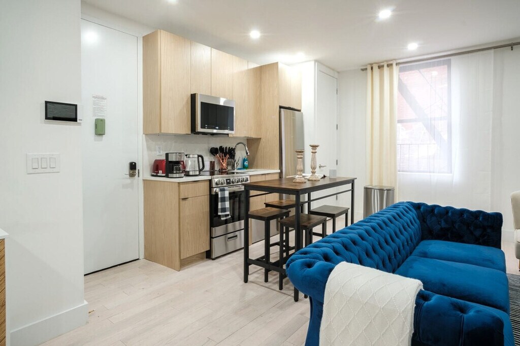 Feel at home in this extraordinary 1-bedroom apartment in New York's East Village, one of Manhattan's most desirable neighborhoods. This thoughtfully designed space features a 50” Smart TV, a well equipped kitchen with cookware, and a comfortable memory foam mattress. The East Village is one of Manhattan’s most vibrant and eclectic neighborhoods, known for its creative energy, historic architecture, and bohemian charm. Once the heart of New York’s counterculture, it’s now a lively mix of trendy restaurants, vintage shops, cocktail bars, and independent galleries. Tree-lined streets, classic brownstones, and a youthful vibe make it a favorite among artists, students, and professionals alike, offering a true blend of old-school New York character and modern city living. [SI]