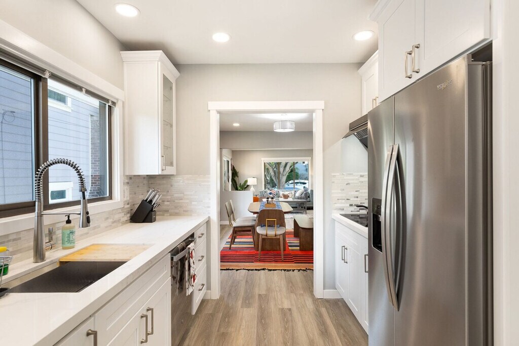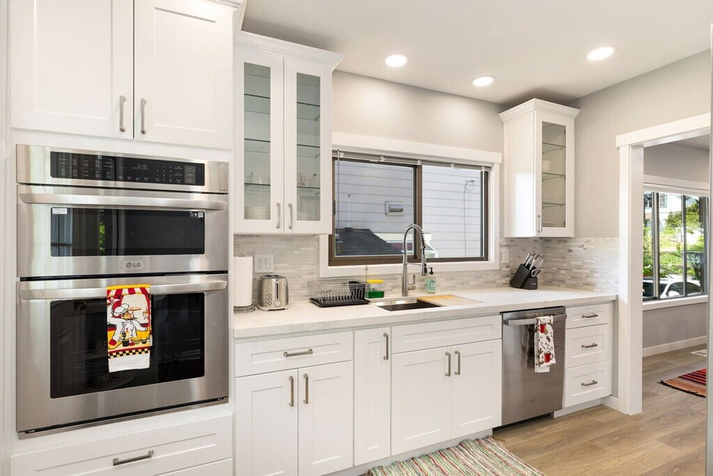 Feel at home in this remodeled 3-bedroom home nestled in a serene neighborhood near Lake Union, scenic walking trails, Gas Works Park, local shops and eateries, with effortless access to the University of Washington and downtown. This home has three levels and is approximately 2540 sqft. This home features central heating and cooling for year-round comfort, two fully equipped kitchens and dining areas, perfect for large or multi-family groups. Both kitchens include stainless steel appliances and are fully stocked with cookware, utensils, spices, coffee, and tea. There are three full bathrooms, each featuring a shower. A spacious laundry room with a sink is also available. Relax in the backyard with outdoor seating, ideal for morning coffee or evening gatherings. Driveway parking is available with an EV charger (bring your own plug), and additional free street parking is available. Well-trained pets are welcome with a fee of $50 per pet per night. Experience the best of Seattle with a stay in this home, nestled in a quiet, safe neighborhood. Take a leisurely stroll to the Cheshiahud Lake Union Loop, explore lakeside restaurants with city-scape views, and enjoy easy access to the shops, cafés and restaurants of 45th Street, Gas Works Park and public transit. This is a pet-friendly home, but please refrain from allowing pets on furniture and linens, including couches, throws, beds, pillows, and towels. Please do not leave pets unattended and bring poop bags to pick up after your pets. Quiet hours are between 10pm and 8am. Parties and events are strictly prohibited, as is smoking or vaping of any kind anywhere on the property, including outdoor areas, and digital piracy. Shoes are not allowed in the home. A $500 fine will be charged per violation. Registration Number: STR-OPLI-24-000338 [SI]
