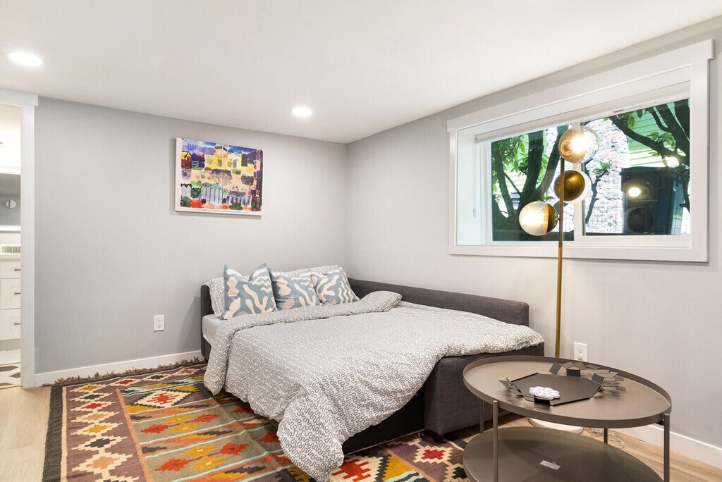 Feel at home in this remodeled 2-bedroom suite located in a quiet area near Lake Union. This upper-level unit spans two levels and offers 2 bedrooms, 2 bathrooms, a front yard, and approximately 1200 sqft of living space. Enjoy easy access to UW and downtown, with steps leading to 45th shops, coffee spots, restaurants, and Gas Works Park. The laundry is shared, and the backyard is reserved for lower-level guests. Experience the best of Seattle's history, city views, and vibrant atmosphere with a stay in this fully remodeled home. The main floor features a living room, dining room, kitchen, 2 bedrooms with queen beds, and 2 bathrooms. The kitchen is equipped with stainless steel appliances and is fully stocked with cookware, silverware, servingware, spices, coffee, and tea for all your cooking needs. The second floor offers a finished attic with extra spaces for activities, though it lacks heating or cooling. All beds are outfitted with high-quality mattresses and linens. Plenty of parking is available on the driveway with electric charging, and there are also plenty of free street parking spots. Well-trained pets are welcome with a fee of $50 per pet per night. Please refrain from allowing pets on furniture or linens, and do not leave them unattended. Please bring poop bags and pick up after your pets. Nestled between the University District, Fremont, and Wallingford, this area is a vibrant mix of academic energy, artistic flair, and residential calm. It's known for its eclectic mix of shops, cafes, and restaurants, catering to a diverse community. The region boasts easy access to the Burke-Gilman Trail, Gas Works Park, and Lake Union, offering stunning city and water views. Ideal for those who appreciate a lively yet laid-back neighborhood with cultural and recreational richness. Very walkable with excellent transit options, multiple bus routes, or a quick drive/uber to downtown. The main floor, top floor, front yard, and outdoor patio are included in this rental. The laundry room and backyard are shared with guests on the lower floor. Guest access is granted via a smart lock with a private entrance. Strictly no parties or events, quiet hours between 10 pm and 8 am, and no smoking or vaping of any kind anywhere on the property, including outdoor areas. A $500 fine applies per violation. Registration Number: STR-OPLI-24-000338 [SI]