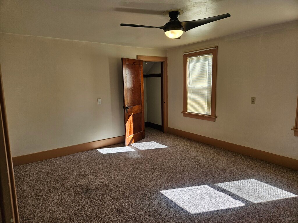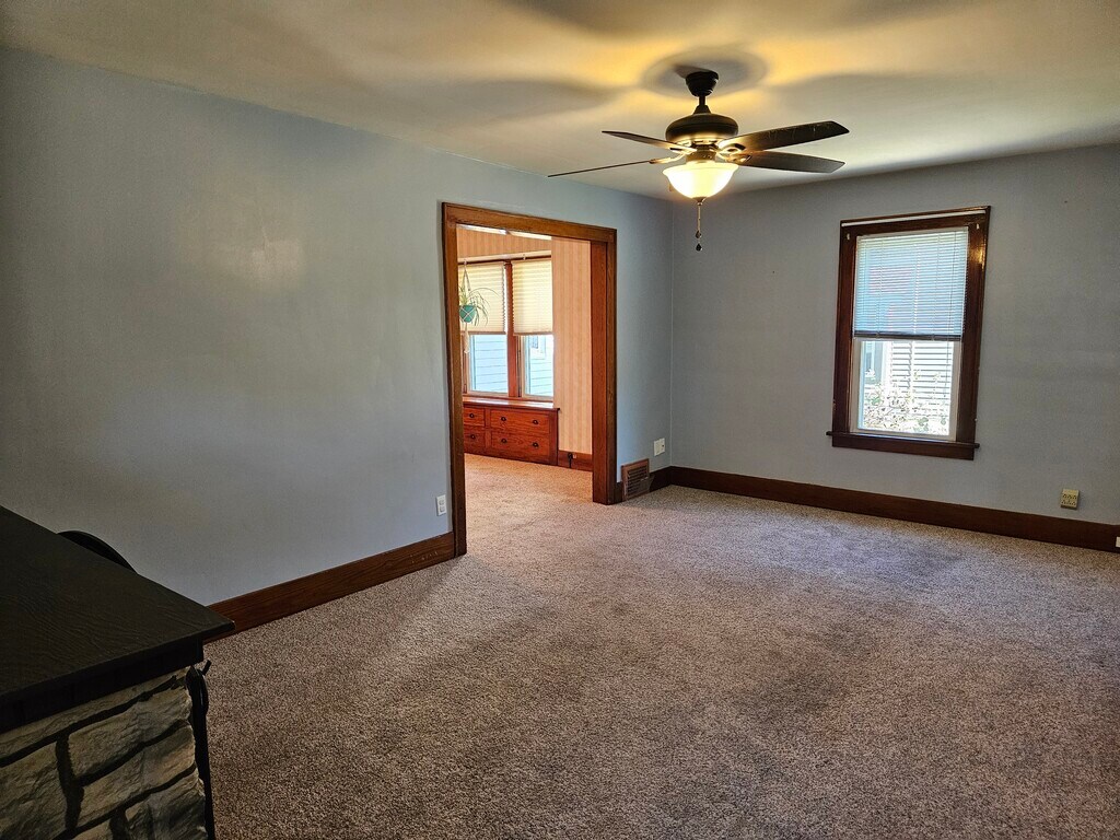 Welcome to your new home! This 3 bedroom/2 bath single-family home offers a large first floor master bedroom (14'x24') with French doors to the screened-in porch and back deck, and first floor master bath with double vanities and jacuzzi tub. The other 2 bedrooms and bath are located upstairs. There is a first floor laundry with a slider to the back deck, and an unfinished basement with plenty of room for storage, exercise equipment, or craft and hobby space. Original wood trim and built-in storage are found throughout the home. You'll love the scenic fenced-in backyard (0.27 acres) with large a garden for use. There are fruiting grapevines, apple trees, and a blackberry bush on the property as well. This property has 2 gravel lots, an insulated detached 2 1/2 car garage, and shed for storage. There is a 2 person hot tub in the screened-in porch included for use (upkeep at the renter's responsibility). Recent improvements include: - Upstairs bathroom completely remodeled in 2022 and downstairs bathroom renovated in 2024. - Kitchen renovation in 2022; range and microwave included. - New carpet in the master bedroom in 2025 (not in pictures). We are pet people and we want you to bring your furry family members, too! (Limit 2 pets total and no aggressive breeds, please.) However, we know they can make messes and cause some extra wear and tear, so there is a pet fee of $35/month per pet and an extra pet deposit of $250. There is not an application fee; however, we are only taking serious inquires. Those interested will need to pay for and clear a background check and credit screening prior to a tour.