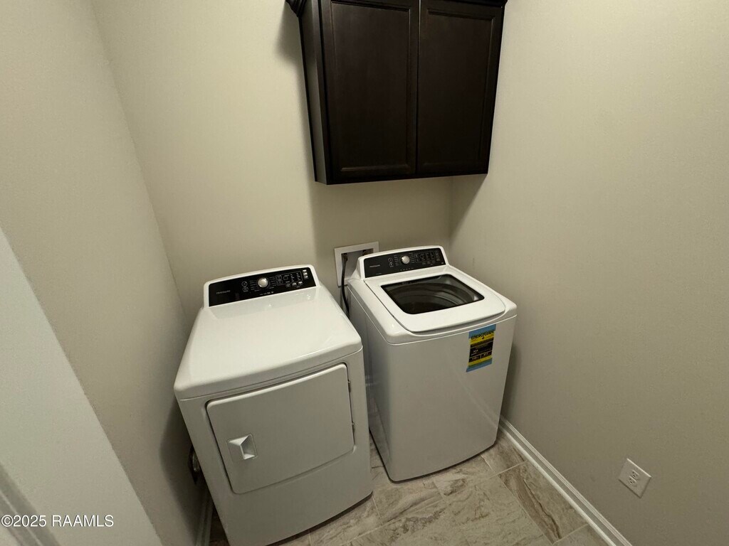 This beautiful 4-bedroom, 2.5-bath home is nestled on the outskirts of the city, offering the perfect balance between peaceful country living and convenient access to everything you need. Upgrades include additional recessed lighting and more. Special features include wood flooring in the living room, stunning birch cabinets, ceramic tile flooring in wet areas, and 3 cm slab granite countertops in the kitchen and bathrooms. The home also features recessed kitchen lighting, a garden tub and separate shower in the primary bathroom, oil-rubbed bronze fixtures, and Frigidaire appliances including a micro-hood, range/oven, washer/dryer and dishwasher. Additional highlights include architectural shingles, radiant barrier decking in the attic, a post-tension slab, a covered patio, and a fenced backyard. Tenant is responsible for fo lawn care, utilities and pest control. Pets allowed