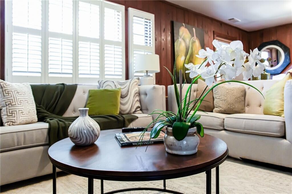 EAST COBB - Wooded 1.5-acre retreat in the Highly Rated Walton High,East Side Elementary,Dickerson Middle school districts. This country charmer (1,500 sq ft,3 bed/2 full bath) with hardwood floors throughout,Kitchen Updated w/ stainless appliances,quartz counters,Open Living/Dining concept with fireplace,Office,Screened in porch and Front enclosed patio and Laundry room. Nest Learning Thermostat (auto-adjusts for energy efficiency),smart locks (keyless entry via app),Wi-Fi thermostat. Minutes from restaurants and shopping,easy access to 285 and 75. Full Furnished Price Option Available MLS ID 7737139