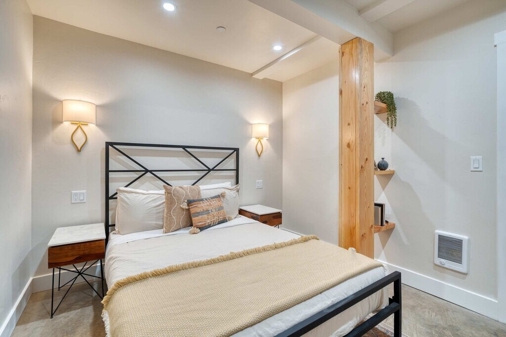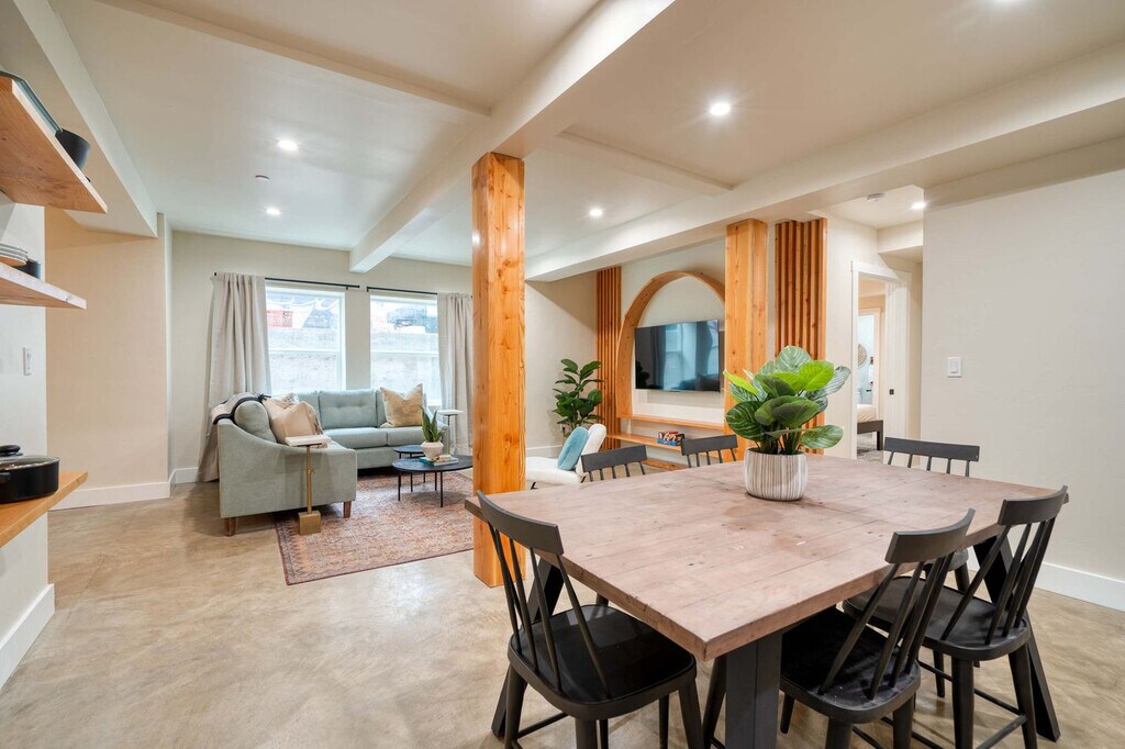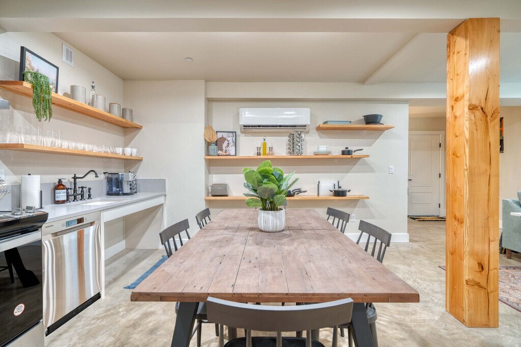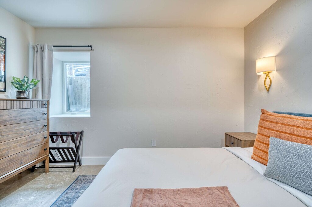 Stay steps from the best shops, cafes, and nightlife on vibrant Mississippi Ave. This light-filled, design-forward apartment features a fully stocked kitchen, fast WiFi, smart TV, and A/C. Off-street parking included. Thoughtful touches throughout make it ideal for couples, solo travelers, or remote work. Walk to everything or relax inside — your Portland stay starts here.The space• Tastefully furnished 1-bedroom apartment located on iconic Mississippi Avenue • Second-floor walk-up with large windows and tons of natural light • Comfy living room with relaxed furnishings and a 65” 4K Smart TV (YouTube TV, Netflix) • High-speed WiFi for remote work, streaming, or planning your Portland adventures • Fully equipped kitchen with full-size appliances, Keurig coffee maker, cookware, and more • Super comfy queen bed with quality linens for a great night’s sleep • Heating for winter and a window A/C unit to keep things cool in summer • Located in one of Portland’s most vibrant, walkable, and creative neighborhoodsThe neighborhoodYou’re staying in one of Portland’s most iconic neighborhoods: Mississippi Ave. Within a 2-minute walk, you’ll find boutiques, breweries, music venues, and some of the best eats in the city — including Eem, Lovely’s Fifty Fifty, and ¿Por Qué No? Expect a mix of locals and visitors strolling the street, biking past colorful murals, or catching a live show at Mississippi Studios. It’s safe, central, and buzzing with creative energy.Getting aroundWalk Score: 93 Bike Score: 100 Skip the car — everything you need is within walking distance. The MAX light rail and bus lines are nearby for easy trips downtown or to the airport. Ride-share is plentiful, and there’s a protected bike lane along N Mississippi Ave if you want to rent from Biketown.Other things to note• This apartment is located on the second floor — one flight of stairs is required • No washer/dryer in unit • No outdoor space • Quiet hours after 10pm • Unit is one of five in the building and shares walls with neighbors — please be respectful with noise