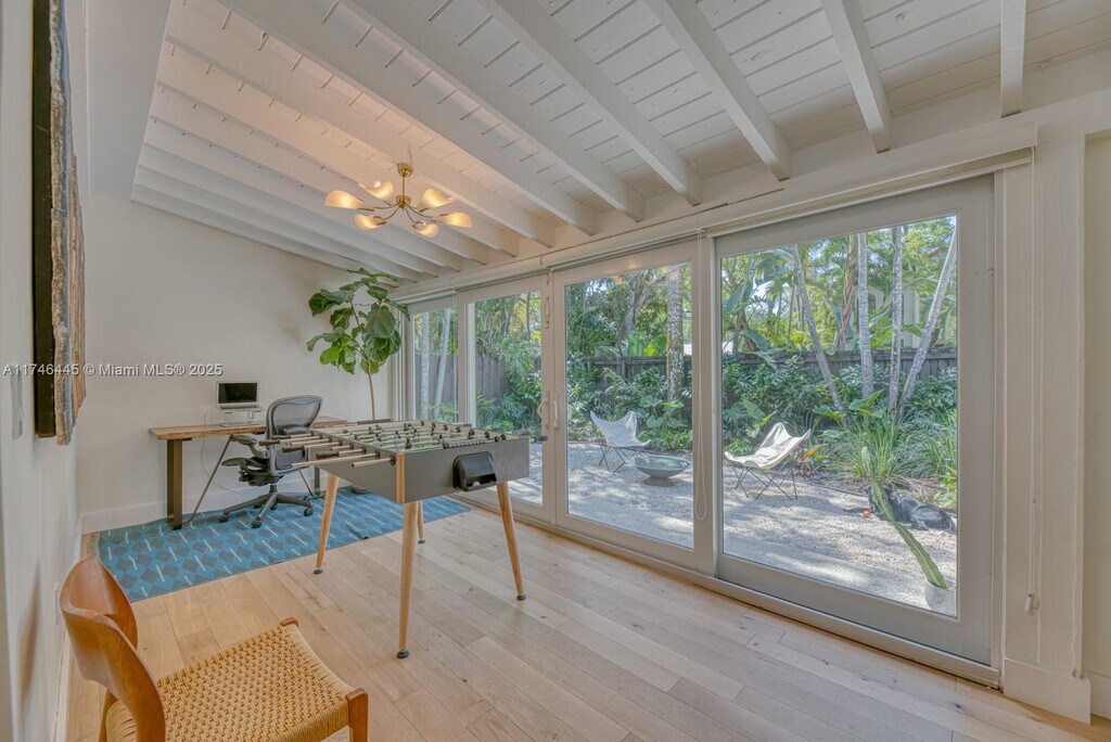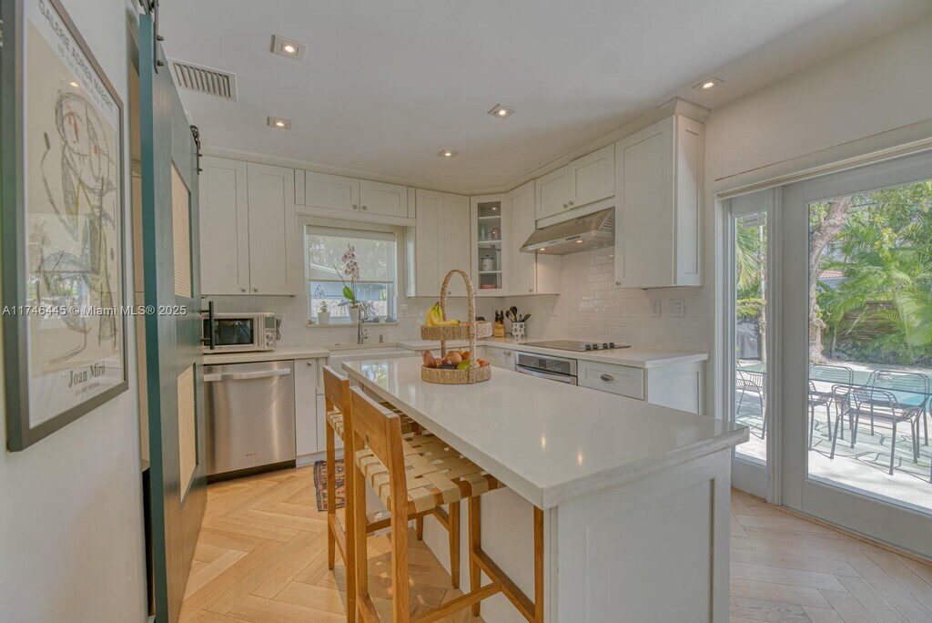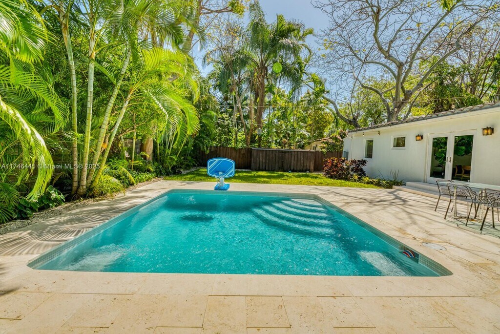Beautiful 3/2 home on a quiet tree-lined street in lush, South Coconut Grove. Located just steps to Merrie Christmas Park with it’s canopy of majestic banyan trees. Totally renovated including hurricane impact glass throughout in non-flood zone. House is light-filled, open living spaces w/ vaulted-beamed ceilings and real wood flooring. Custom kitchen features white wood cabinetry, quartz countertops, stainless appliances & center island w/ bar seating. Master suite has his and her closets and frameless glass shower. French doors & walls of glass overlook the ultra-private & expansive tropical garden w/ Avocado & Mango trees and pool. Walk or bike to the Grove village center’s galleries, boutiques, cafes and bayfront parks & marinas. Location, location, location. MLS # A11966221