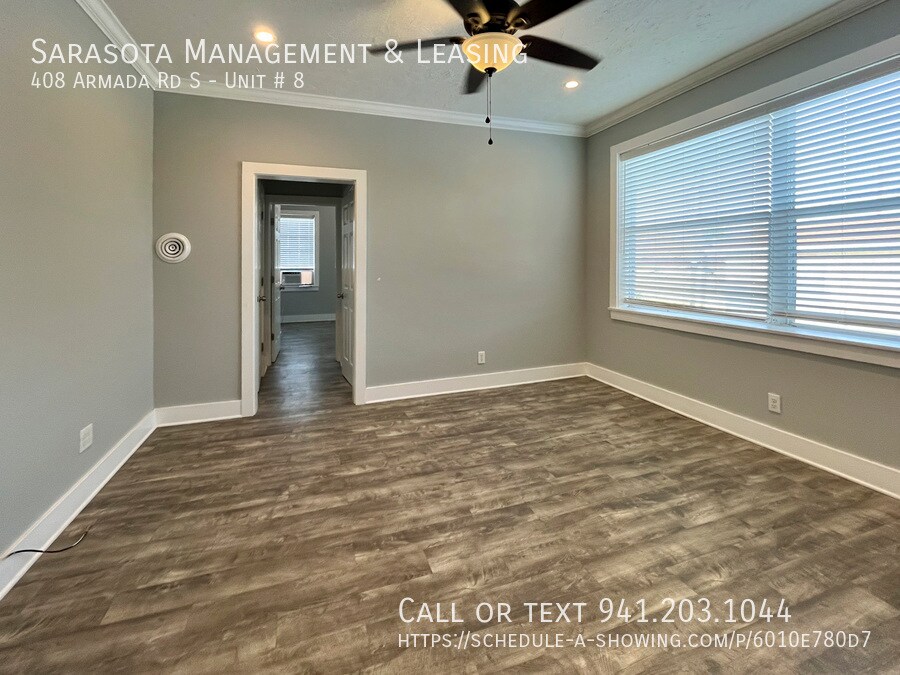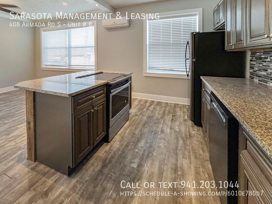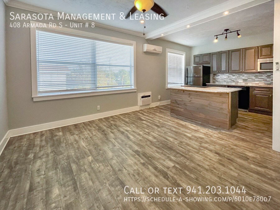 Updated 2nd Floor 1 Bed 1 Bath Venice Island Apartment! 1 Pet Max, 30 lb Max, Dogs with Breed Restrictions Venice Beach, Historic Downtown, Cafe's, The Art Center, Venice Theatre Venice Schools 1 Assigned Parking Space Granite Countertops, Stainless Steel Appliances, Breakfast Bar Open Floorplan N/A Garbage included Sewage included Sewer Included Trees / Shrub Care Included