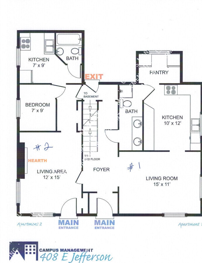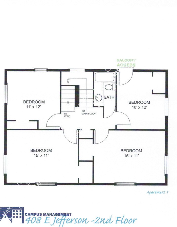 This efficiency apartment features a fireplace, a ceramic bath, some hardwood flooring, and a study. This apartment can be rented by a separate individual or by someone in a large group that rents #1.