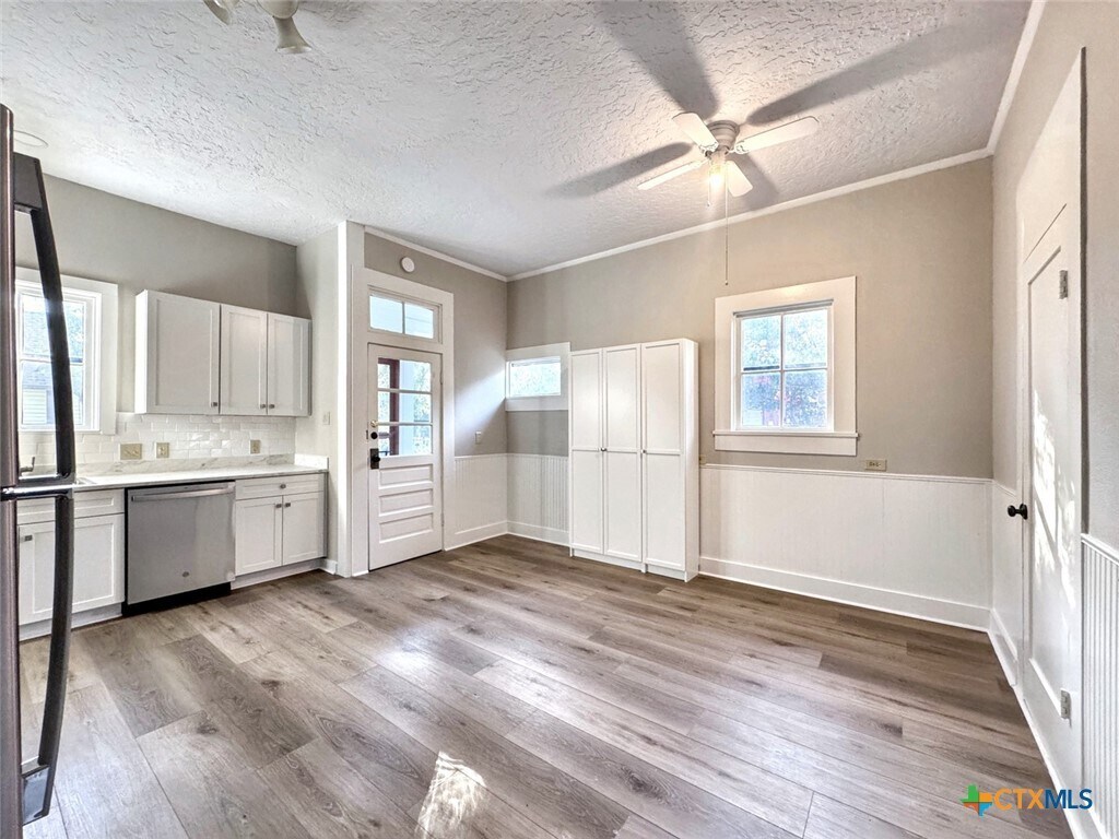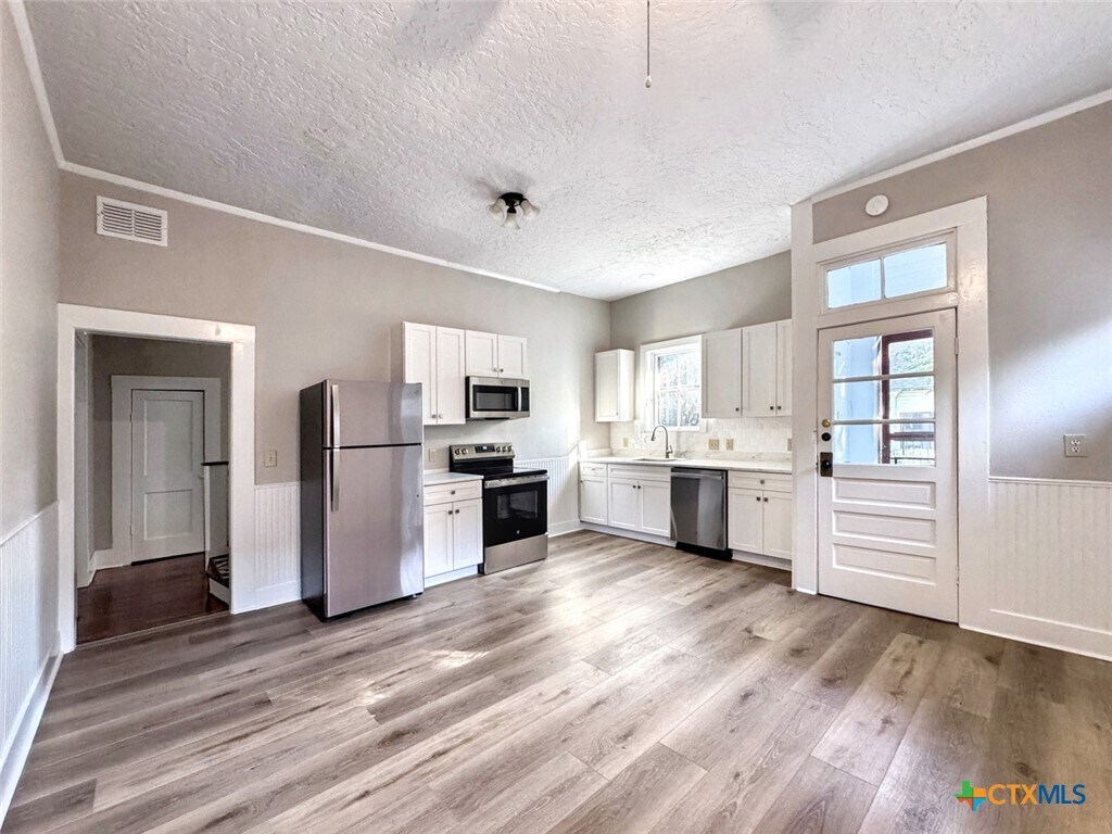 Welcome to 410 Burleson Street,where timeless character meets unbeatable convenience! This beautifully preserved historic home sits right on the doorstep of Texas State University,offering a unique blend of vintage charm and modern comfort. Featuring 2 spacious bedrooms,2 full baths,and a flex room downstairs that easily functions as a third bedroom,home office,or study space—this layout is perfect for students,faculty,or anyone seeking space and versatility. Enjoy a large,light-filled kitchen perfect for entertaining,original architectural details,and the rare chance to live in a home that tells a story. The inviting front porch is ideal for morning coffee,and you're just steps away from the campus quad,downtown San Marcos,and all the local hotspots. Kitchen was fully remodeled in August of 2025. This property is subject to a mandatory residents benefits package at $45.95 a month. More information on the wonderful benefits included can be found in associated docs.