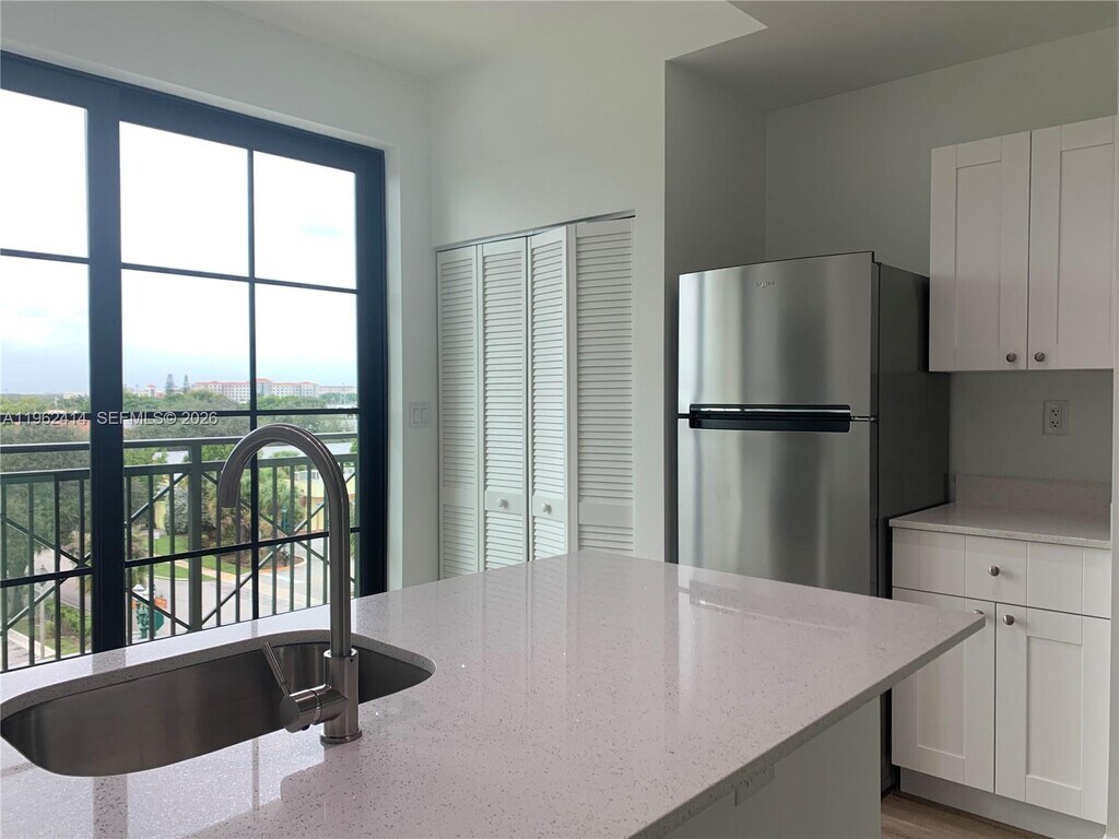 Modern one-bedroom unit built in 2020 and situated in a contemporary, well-maintained building in the heart of Downtown Davie. This fourth-floor residence features a covered balcony, perfect for enjoying beautiful sunset views and outdoor relaxation. The unit offers a sleek, modern kitchen with stainless steel appliances and quartz countertops, designed for both style and functionality. The spacious bedroom includes a walk-in closet, and the bathroom is finished with modern fixtures. A full-size washer and dryer are conveniently located inside the unit. High-impact glass windows provide added security, energy efficiency, and noise reduction. The building features secure key card access, which also grants entry to amenities including a fitness center, assigned storage space, and a media room. The media room is equipped with a kitchen, television, and pool table, and can be reserved for private gatherings and events. Ideally located in the vibrant Downtown Davie area, the property is close to Nova Southeastern University, shopping, dining, Fort Lauderdale Airport, and South Florida beaches. Easy access to major highways including the Turnpike, I-595, and I-95 makes commuting throughout Broward County and beyond convenient. MLS # A11962414