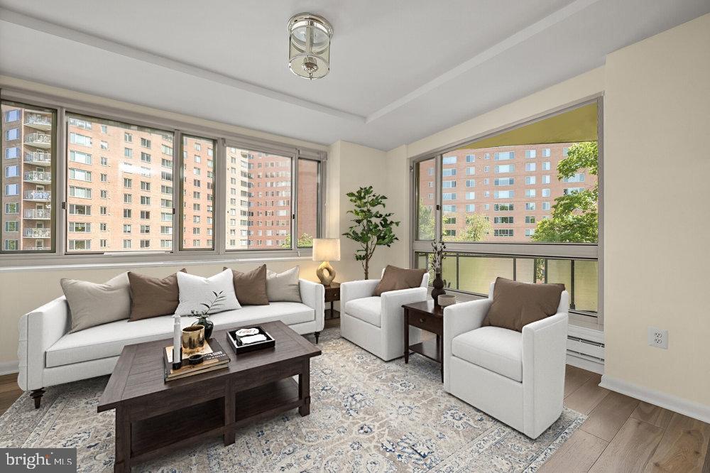 Exquisite 9th-Floor Corner Residence at The Cathedral Cooperative! This light-filled two-bedroom, two-bathroom corner unit offers open-concept living with upgraded flooring throughout and a private balcony, perfect for enjoying sweeping views and abundant natural light. Both bedrooms are generously proportioned, and the residence includes one assigned garage parking space and a private storage unit for added convenience and functionality. Residents enjoy the exceptional amenities of this full-service cooperative, including a heated outdoor pool set against the lush backdrop of Glover-Archbold Park, a fully equipped fitness center, 24-hour front desk and concierge service, and beautifully maintained common areas. The Cathedral Cooperative offers a quiet, community-oriented environment while maintaining easy access to the vibrancy of the city. Ideally located in the Wesley Heights neighborhood near Washington National Cathedral and the shops and restaurants of Cathedral Commons, this home combines serene, park-adjacent living with convenient access to downtown D.C. A rare opportunity to enjoy comfort, style, and a full-service lifestyle in one of DC’s most desirable cooperatives.