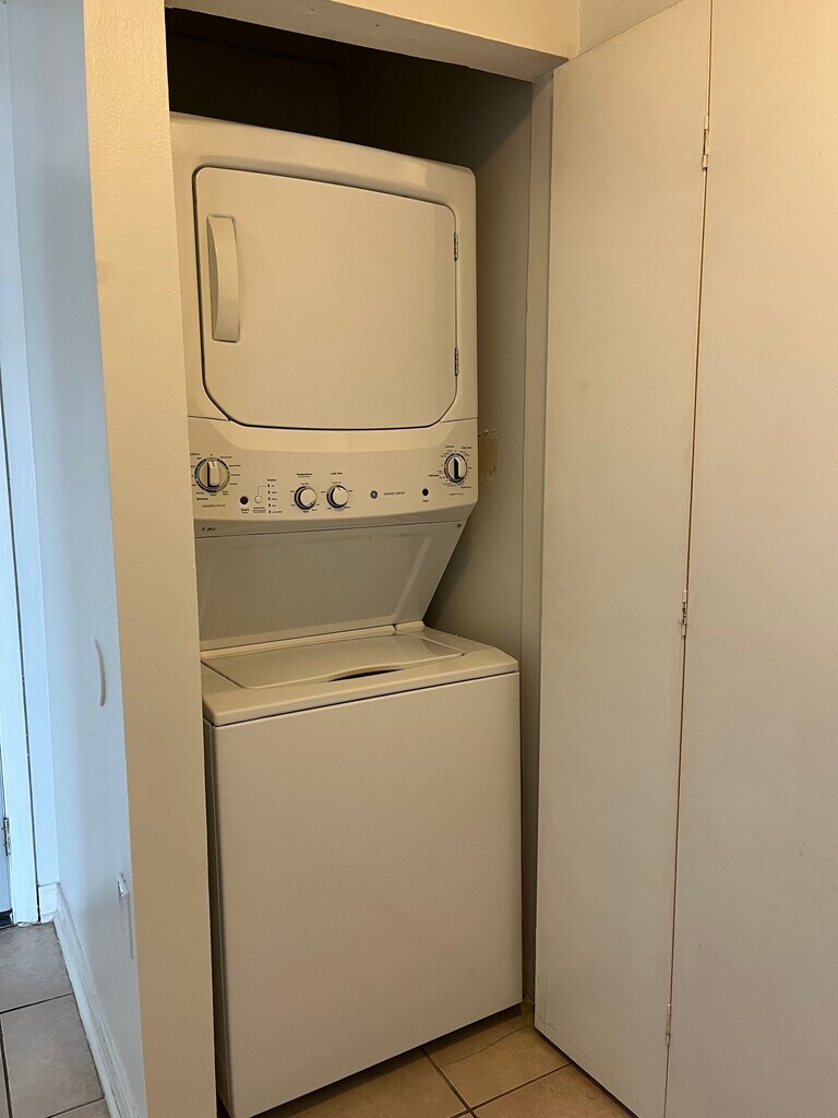 Third floor, un-furnished, 1 bedroom with all tile floor condo. Condo has 15 foot high ceiling with sky light in living area. Washer/Dryer included with storage space located on balcony.
