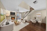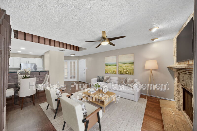 Step into contemporary living with this gorgeous condo located in the heart of The Medical Center, showcasing a plethora of modern updates that cater to your lifestyle. Upon entering, you'll be greeted by a kitchen that every home chef dreams of, featuring sleek stainless appliances, stunning quartz countertops, and a stylish tile backsplash. Plus, enjoy the convenience of having a refrigerator, washer, and dryer readily included. The spacious living and dining combo is perfect for entertaining or cozy family nights, with a charming fireplace that adds warmth and ambiance to your gatherings. The flexible floorplan includes a versatile downstairs bedroom with a full bath, ideal for guests or a dedicated home office. Upstairs find two more well-appointed bedrooms and a bathroom thoughtfully designed with two separate vanities, ensuring personal space and comfort for all. Two flat screen TVs remain, offering entertainment at your fingertips! This remarkable home is nestled in a great location near major highways I-10 and 410, with close proximity to USAA and UTSA, making your commute a breeze. Reside in a gated community that provides peace of mind and enjoy leisure time by the fenced pool. Experience the blend of a convenient location with the peaceful retreat of your personal sanctuary.