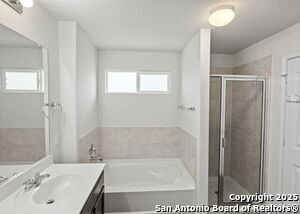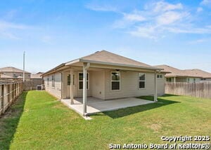 This Red River Ranch 4 bedroom 2 bath gem is move in ready! Like new (built 2019). Sits on a large greenbelt lot for extra privacy. Down the road from Gorgeous downtown Cibolo, city park and ymca fields/fitness center. Interior has Open floor plan with tall ceilings. Eat-in kitchen featuring granite countertops, an island, built-in appliances including self-cleaning oven & microwave, and modern finishes throughout. Sleeping areas are smartly laid out: two bedrooms and a full bath in front; a third bedroom is just off the kitchen. Primary suite is separate at rear of the house: walk-in closet, garden tub, double vanity, and separate tub/shower. Outdoor features: **oversized covered patio**, complete with a private gate that opens to a walking path. Fenced yard, sprinkler system, double-pane windows, gutters, and mature trees-these extras make outdoor living as pleasant as inside! Easy to tour. Come take a look! Pets welcome!
