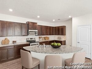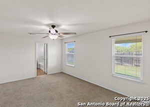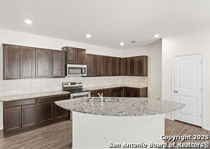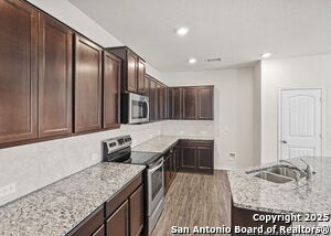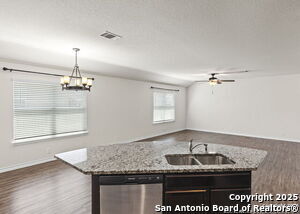 This Red River Ranch 4 bedroom 2 bath gem is move in ready! Like new (built 2019). Sits on a large greenbelt lot for extra privacy. Down the road from Gorgeous downtown Cibolo, city park and ymca fields and fitness center. Interior has Open floor plan with tall ceilings. Eat-in kitchen featuring granite countertops, an island, built-in appliances including self-cleaning oven & microwave, and modern finishes throughout. Sleeping areas are smartly laid out: two bedrooms and a full bath in front; a third bedroom is just off the kitchen. Primary suite is separate at rear of the house: walk-in closet, garden tub, double vanity, and separate tub/shower. Outdoor features: **oversized covered patio**, complete with a private gate that opens to a walking path. Fenced yard, sprinkler system, double-pane windows, gutters, and mature trees—these extras make outdoor living as pleasant as inside! Easy to tour. Come take a look!