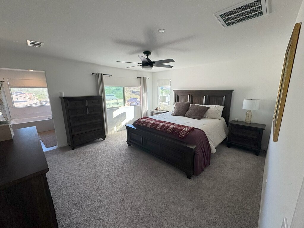 Welcome to your new home in the lovely Alberhill Ranch Community! This newly constructed home (August 2024) offers 5 bedrooms, 3 baths, upstairs loft and laundry and an attached 2 garage. This residence features an upgraded chef's kitchen layout, large pantry and upgraded calacatta quartz countertops. This home boasts a seamless living and dining room open floor plan with a wonderful transition to a large outdoor covered patio with a fan. The backyard displays tranquil unobstructed views of the Santa Ana Mountains, perfect for relaxing after a long day and year-round outdoor living. Enjoy sustainable living with solar and take advantage of the home's prime location near parks, scenic hiking trails, top-rated restaurants, shopping and Alberhill Elementary School. The community offers playground, pools and the club house for your gatherings. Come experience the beauty and convenience of life in Alberhill Ranch where elegance, comfort, and community come together in Lake Elsinore's newest gem. Tenant is responsible for all utilities (water, electric, gas, trash/sewer) Solar and Lawn/Weed Maintenance Included 1 year lease defaulting to month to month after year 1 No Smoking Up to 2 Pets (dogs only) allowed, no weight limit 2 car attached garage and long driveway