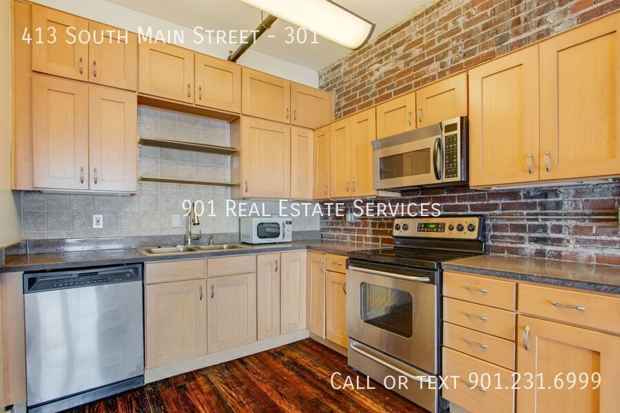 Spacious 1 bed/1 bath condo at The William Farrington on South Main Street downtown! This magnificent space has high ceilings, beautiful original hardwood flooring throughout, and exposed brick walls with original painted lettering. The living area is long (37'x15') with room for both a living and dining area. Floor to ceiling windows provide a great overlook of all the action of South Main and downtown. The kitchen includes all stainless steel appliances. The large (22'x15') bedroom is located at the back of the condo for more privacy and features a full wall of closets, completely with shelving and drawers. Free laundry on each floor w/ laundry lockers for residents. One reserved (numbered 301) garage parking space included! Pet friendly! SCHEDULE A SHOWING: The William Farrington features 17 condos in the middle of the South Main Arts District. The property’s namesake, William Farrington, was the first president of Union Planters Corp. and also the builder and president of Memphis Street Railway. Professionally Managed by 901 Real Estate Services *Additional fees may apply. Please ask the agent for more details. Some photos virtually staged.* **Avoid scams: We do not post our properties on Facebook Marketplace or Craigslist and will never ask you to pay anything through CashApp, Zelle, or Venmo.** Amenities: dishwasher, disposal, elevator, microwave, stainless steel appliances, controlled access building, on-site laundry, refrigerator, pet friendly, floor to ceiling windows, exposed brick walls, appliances included, beautiful hardwood flooring, ceiling fan(s), close to ms river, shower/tub combo, city overlook, located in south main district, located downtown, custom closets with built ins, complimentary laundry, historic building, rooftop deck, parking - 1 gated unreserved space, wood beams, multiple closets in primary bedroom