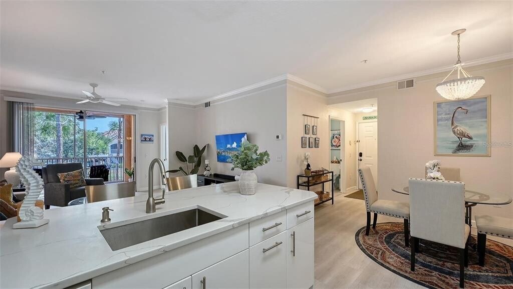 Located in Bella Villino on Palmer Ranch,beautifully renovated condo with pond & resort views. This large 1-bedroom,1-bathroom second-floor condo is now available for annual rental and can be rented furnished,partially furnished,or unfurnished. As you Step inside this open,light-filled floor plan,you will find a stylish new kitchen featuring European-style cabinetry,quartz countertops,and a convenient breakfast bar—perfect for both everyday living and entertaining. The spacious living area opens onto a large,screened lanai,where you can relax and enjoy peaceful views of the pond,resort-style pool,and clubhouse. Luxury vinyl plank flooring throughout the main living spaces. Spacious bedroom,updated bathroom with a custom vanity and quartz countertops,and tub/shower combo. The separate laundry room has built-in shelving,and a full-size washer and dryer. Located in the sought-after Bella Villino community,residents enjoy an impressive array of resort-style amenities,including a heated pool and spa,clubhouse,indoor racquetball/basketball court,billiards room,tennis courts,media room,car detail bay,gas grills,picnic areas,and on-site management. Ideally situated near Siesta Key and beautiful Gulf beaches,nature preserves,the Legacy Trail,golf,shopping,restaurants,and so much more. Sarasota lifestyle living at its best! MLS# A4688831