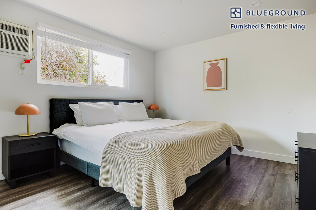 Discover the best of Los Angeles, with this one bedroom apartment in Mar Vista. It’ll be easy to simply show up and start living in this furnished apartment with its fully equipped kitchen, living room, and our dedicated, on-the-ground support. (ID #LAX1327) The advertised rate of $2,190/month is the lowest available price, based on a 11 month(s) and 29 day(s) stay with a move-in date of January 7, 2026. Rates vary depending on the duration of stay, season, and other parameters. For exact pricing and additional pricing components, please visit our website and enter your desired move-in and move-out dates. The rate is applicable when billed upfront; it can be higher if billed in multiple payments. Brokers are welcome to reach out. Were you looking for an unfurnished lease? Try Blueground instead and upgrade from unfurnished to furnished living: - Furnished at rates comparable to unfurnished - No setup or furniture costs - save thousands - Move-in ready - save time, just bring your suitcase Designed with you in mind Thoughtfully designed with bespoke finishes, modern furnishings, and a fully equipped kitchen, you’ll enjoy that “I’m home” feeling with this Blueground apartment. Whether you’re lounging in your comfortable living room streaming the latest and greatest entertainment on the smart TV or premium wireless speaker, or getting some well-earned rest on the superior quality mattress with luxury linens, you’ll fall in love with everything this Mar Vista apartment has to offer. Sleeping arrangements King Bed, 70.8in/180cm Amenities Building amenities unique to this one bedroom apartment include an on-site: - Dryer in building - Washing machine in building - Parking - Pets allowed Arrival and ongoing support The entire apartment is yours to enjoy! Throughout your stay, you’ll have access to our Client Experience team through the Blueground App. You can schedule additional cleanings, submit maintenance requests, and view our neighborhood recommendations with just a few taps. We’ll share all details upon confirmation of your stay. Ideally Located This furnished apartment is situated in Mar Vista, on the Westside of Los Angeles. Here the quiet residential streets give way to main avenues full of coffee shops and thrift stores. There is a low-key and relaxing feel to this neighborhood. The Mar Vista Recreation Center is a notable gem. It has an auditorium, baseball diamond, basketball courts, roller hockey rink and much more. It's ideal for individuals of all ages, groups of friends or families with children. On the way to the beach you'll pass beachside bungalows and colorful apartment buildings. From Mar Vista, Santa Monica Pier and Venice Boardwalk are 15 minutes away by car. LAX Airport is 20 minutes by car or around 1 hour away using public transportation. Other things to note This Blueground apartment has flexible lease options, allowing you to book it for one month, a year, or more. Pets are welcome, though weight limits and breed restrictions apply and may incur fees. Parking is offered based on availability and is subject to a fee. Please keep in mind that this is a walk up building. We take great pride in ensuring every photo displayed is shot in our own units with our actual furnishings. That said, we regularly refresh our decor and furniture arrangement, which may differ from what’s pictured. [SI]