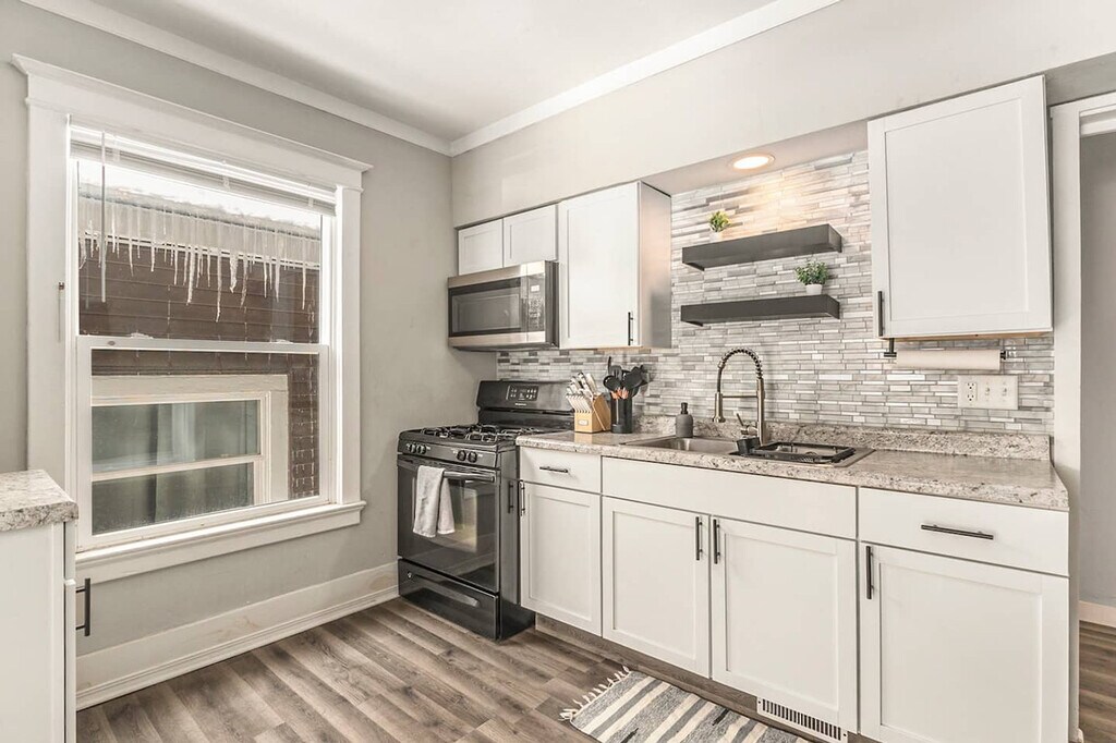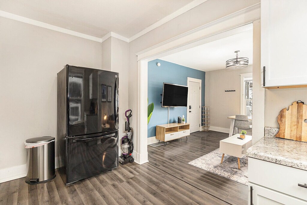 Feel at home in this renovated apartment in a safe area, less than a mile from all hospitals on Medical Mile. This unit is in the heart of Grand Rapids and within walking distance to many top locations. The kitchen is stocked with dishes, silverware, cups, mugs, wine glasses, pots and pans, kitchen utensils, dish soap and sponge, hand soap, garbage bags, a fire extinguisher, cleaning solution, cleaning rags, kitchen hand towels, oven mitts, leftover containers, a coffee pot, toaster, knives, a cutting board, and coffee. The bathroom is stocked with hand soap, towels, garbage bags, a hair dryer, and a first aid kit. The mattress has a mattress protector and the pillows have pillow protectors that are washed between each stay. Pets are allowed with a one-time $149 pet cleaning fee and $40/month/pet additional fee. This centrally located apartment is close to everything in Grand Rapids. You can be to any highway or in the heart of downtown in less than 5 minutes. The neighborhood is very safe with a lot to do in the area and is within walking distance to many restaurants and coffee shops. It is also a short distance from the historic 6th St Bridge. There are many bus stops nearby as well as numerous electric scooters and bikes for rent across the street. Also, ride-share services are readily available throughout the city. There might be some muffled white noise from the highway that you may hear from time to time. All rentals will be a minimum of 30 days. You must be 18 or older to book. [SI]