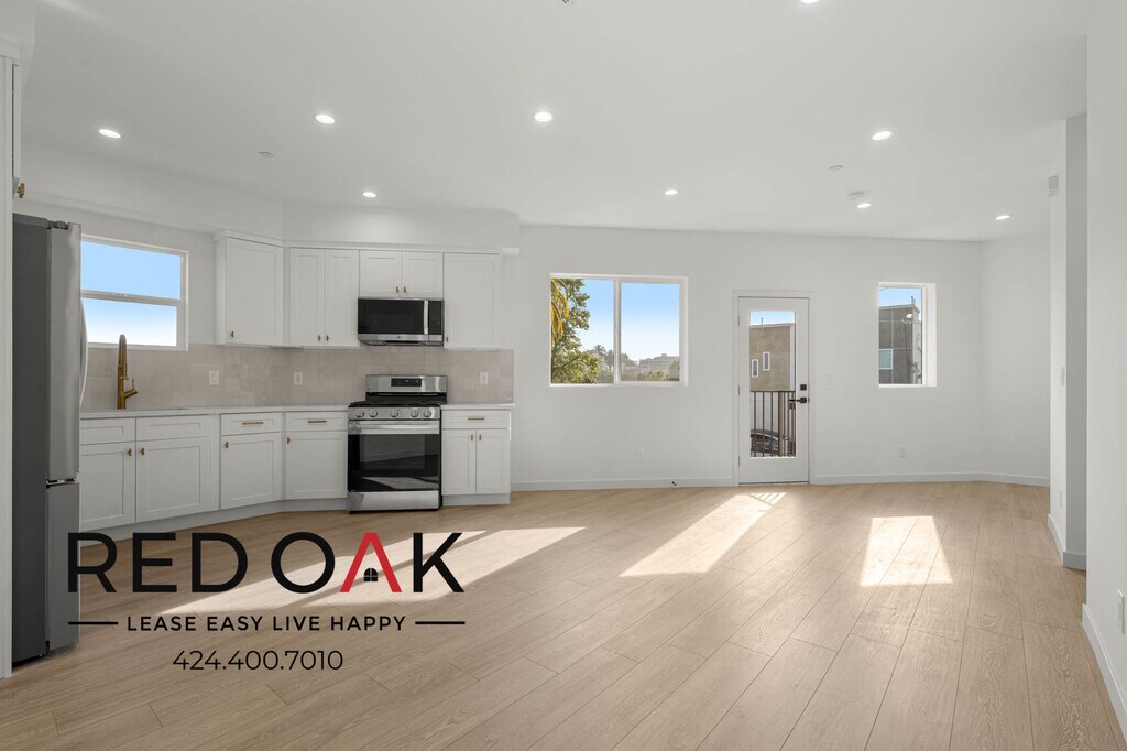 Inviting Three-Bedroom with Elegant Floors, Sunlit Interiors, and In-Unit Washer/Dryer ~ In Vibrant Los Angeles! Key Features: ~ Perfectly Situated: A gated property with beautifully maintained grounds. ~ Naturally Lit: Windows fill the home with abundant natural sunlight. ~ Hardwood Style Floors: Durable and stylish flooring throughout the living areas. ~ Climate Control: Central heat and A/C provide year-round comfort. ~ Eat-In Kitchen: Hardwood cabinets, granite countertops, and stainless steel appliances. ~ Relaxing Bedrooms: Bright and airy spaces with large windows and ample closet space. ~ Refreshing Bath: Well-lit mirror, hardwood vanity, and soaking tub/shower. ~ In-Unit Laundry: Washer and dryer included for added convenience. ~ Pet-Friendly: Welcoming your furry companions. ~ Convenient Location: Situated in Los Angeles, near Lafayette Park, popular dining spots, cafes, and shopping, with easy access to major freeways for seamless travel throughout the city. Don't miss out on the opportunity! Available for an immediate move-in. Call to schedule a viewing today! LEASE TERMS: One Year Lease Photos may not reflect the exact available unit. Unit Comes UNFURNISHED - Some images may be digitally staged Staged Photos to offer ideas for how to use the space. Per CA Law AB628, cooking apparatus/refrigerator will be provided prior to taking occupancy. Availability is not guaranteed - please verify all details. Square Footage is approximate. Street Parking Only. Showings may not be 1-on-1. Listed pricing and special offers are only valid for new residents. Pricing and availability are subject to change without notice and may vary between similar units. Red Oak does not warrant or represent that image renderings on this website are an accurate representation of every floor plan available at the Property. Floor plans may vary unit by unit and by location at the Property. Please contact the Leasing Office to schedule a tour of the Property and the particular unit you are interested in. Pricing and availability are subject to change at any time. **All applicants receive equal consideration; we follow all Fair Housing laws.*