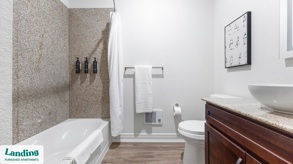 Landing is a top-rated, fully furnished apartment network with thousands of homes across 250+ U.S. cities. With premium amenities, a mobile app to manage your stay, and 24/7 support. Our apartments have everything you need for monthly and longer stays.: 6-Month Minimum base rent: starts at $2349/mo 12-Month Minimum base rent: starts at $1899/mo Landing's apartments at Ledge Rock are designed for comfortable, easy living, with the ability to stay as long as you like. All Landing apartments include: - Fast Wi-Fi - Stylish furnishings - Fully-stocked bathroom - Smart TVs - Comfortable bed - Professionally cleaned - Guest support Stay longer for cheaper! The longer you stay, the bigger your discount. Price advertised is for a 12-month stay, including all utilities and fees, and may vary based on availability. We manage multiple units at this property. While all feature a similar style and furnishings, the layout and specific design elements may vary slightly from the photos provided. Some of the nitty-gritty: a background check and proof of income are required; we're completely smoke-free; pet-friendly options are available; parking is subject to availability.