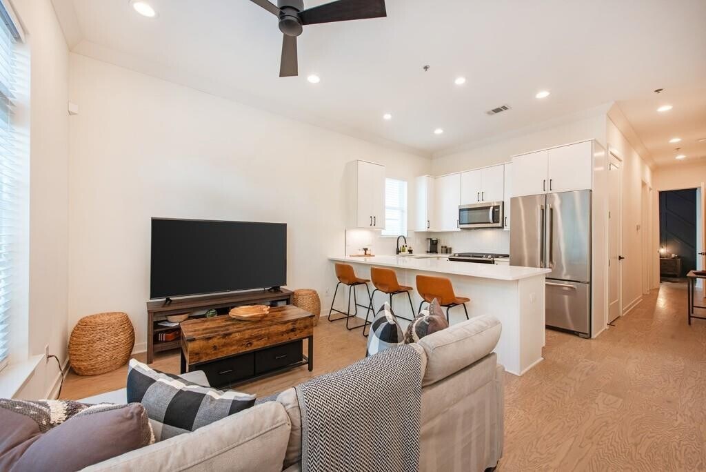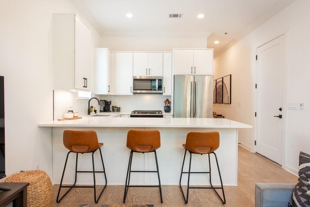 Top-Floor Luxury + Walkable Decatur Lifestyle! Welcome to The Flats 302,the premier unit in an exclusive 6-home community located in sought after,City of Decatur. This stunning top-floor flat offers the best of both worlds: elevated,modern living,paired with the convenience of all things Decatur-acclaimed restaurants,shops,festivals,parks/greenspace and more! Inside this amazing,top floor condo,enjoy 10’ ceilings,wide-plank wood floors,and a beautifully designed kitchen for the chef,complete with quartz countertops,custom cabinetry,a Bertazzoni gas range,Bosch dishwasher,Broan vent hood,soft-close drawers,tiled backsplash and pot-filler! The open concept living space features a abundant natural light,dining area,and plenty of room for entertaining or relaxing in style,plus a private grilling balcony off the kitchen. The oversized owner’s suite offers a true retreat,featuring an accent wall,ensuite bath with double vanities,floor-to-ceiling tile,and a frameless glass shower,plus a customized walk in closet. Two additional bedrooms,large secondary bathroom,also with double vanities,separate powder room for guests,custom window blinds and a full-sized laundry room complete the interior. But the true showstopper? An expansive rooftop terrace,with full decking and room enough container gardening,dining under the stars,naps in a hammock,lounging with a book,soaking in some sun,or a sunset toast with friends! Additional highlights include an attached,2-car garage,unique to the top floor condos; secured building access,and a community garden and greenspace. A rare opportunity to live in best unit in this boutique community,in one of the South’s most beloved neighborhoods – acclaimed dining,shopping,festivals,parks – plus its convenient proximity to Agnes Scott College,Emory University and Hospitals,and more – this is the turnkey,Decatur lifestyle you have been searching for! **Also available for $4,500/mo furnished **Owner will consider a Lease/Purchase**