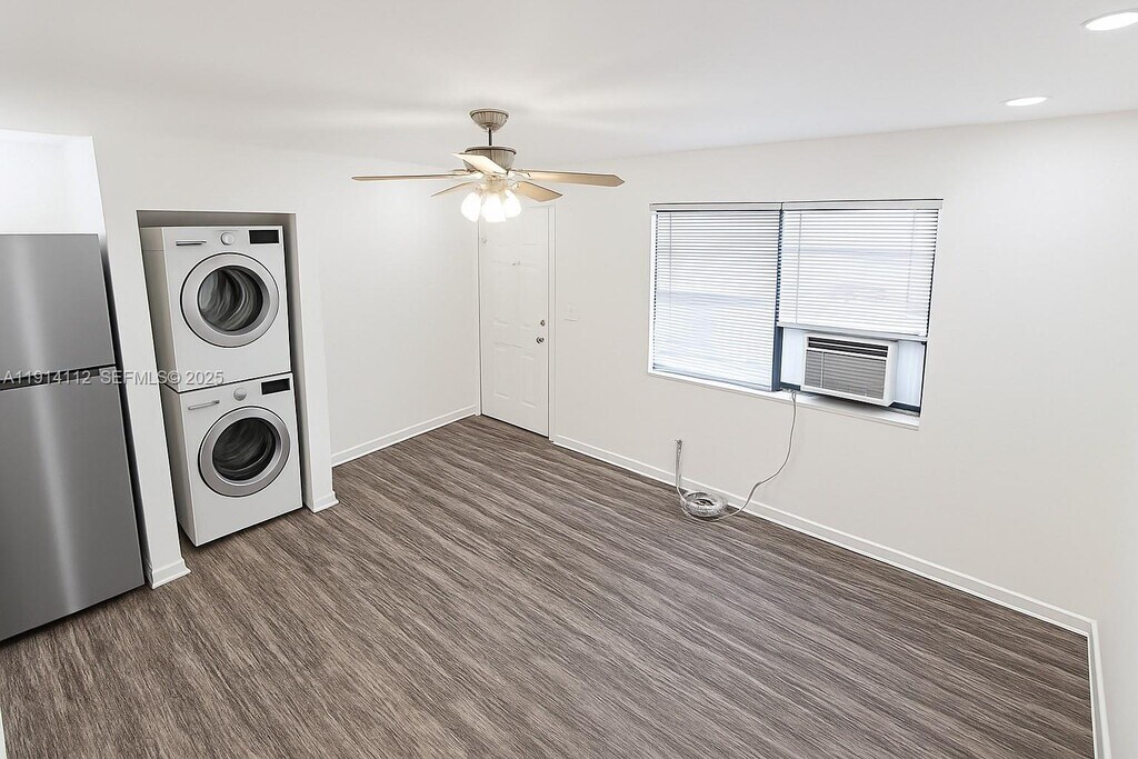 Spacious and beautifully renovated one-bedroom apartment with brand-new flooring and a fresh coat of paint, creating a bright and modern living space. Large windows bring in plenty of natural light, while generous closet space ensures ample storage. The full kitchen boasts a sleek granite countertop, a full-size fridge, with washer and dryer and a stove. Rent is $1,595 and includes water, sewer, and trash. Perfectly situated within walking distance of Hallandale Beach Boulevard, restaurants, banks, parks, and shops, with easy access to I-95, public transportation, Aventura Mall, casinos, US1, the Turnpike, and Fort Lauderdale Airport. Enjoy both comfort and convenience in a prime location. We present all offers!