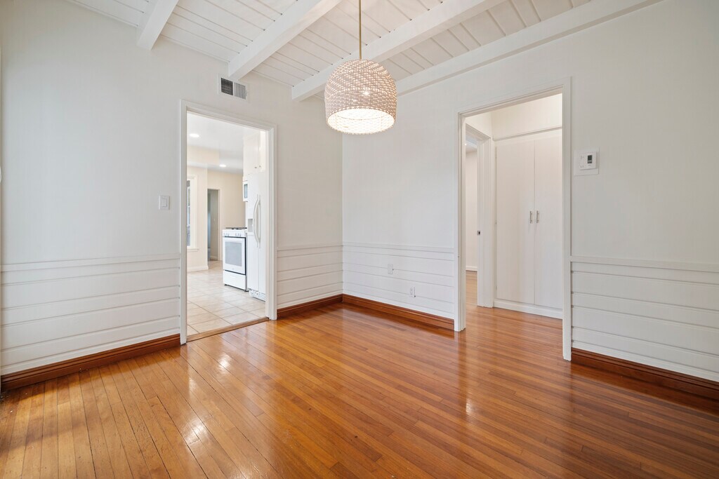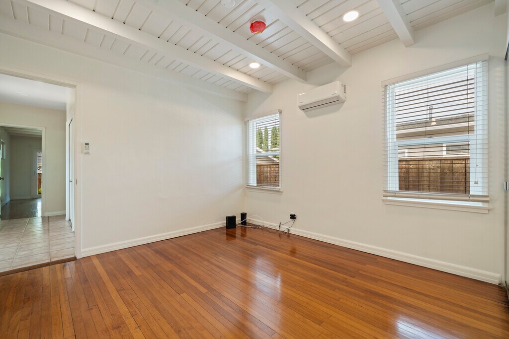 Freshly done very clean. Single Family Home in a very desirable neighborhood. Hardwood floors, open beam ceilings, LED energy saving lighting appointed. Ring security camera, Blinds, appliances, very large fenced yard with a gas fire pit. Heating and A/C 6,750 sq. ft. Lot like a park. Walk to Culver City restaurants, Jacksons market a block away. Ride your bike to the beach on the bike path without car traffic. Great place to live. No smoking allowed. 1 year lease