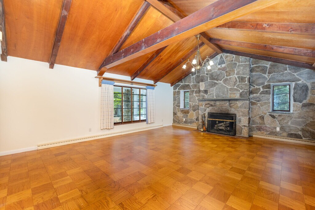 Call for Availability - Step into your very own secret garden on this 36-acre treasure hidden away in a peaceful forest. 418 Plymouth Road was handcrafted personally by the owner's grandfather with great care and attention to local materials. Sourcing from around the property and an old farmhouse, now the garage, he built the main fireplace and beautiful stone walls standing throughout the home. You can especially see such craftsmanship in the living room's stonework and exposed wood beams, evoking thoughts of a cozy cabin in the mountains. On the second floor, both bedrooms have their own walk-in closets and there are 2 full bathrooms: one en suite in the primary and another just outside the next bedroom. The third bedroom on the main floor adds flexibility with another full bathroom around the corner. The charming barn is a working garage with 2 parking spaces, along with possible storage space in the bays or on the above floor. The kitchen also has ample storage with an additional pantry room. New improvements include a full house generator (Generac), refrigerator, electrical panel, all floors refinished, and all rooms newly painted. Enjoy true privacy with your own walking/snowshoe trail where you'll see thousands of spruce, white pine, and hemlocks planted while the property was a Christmas Tree farm for almost 20 years. MLS# 24132579