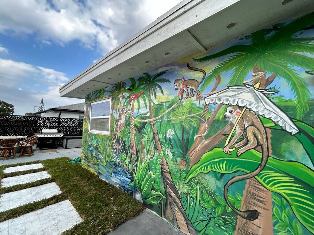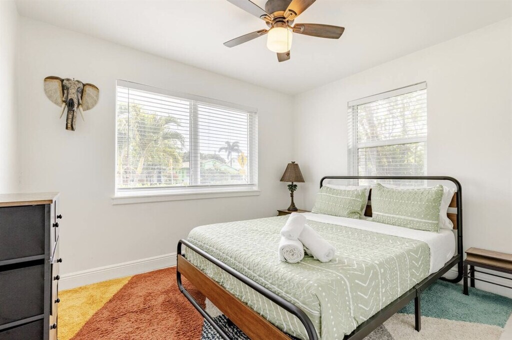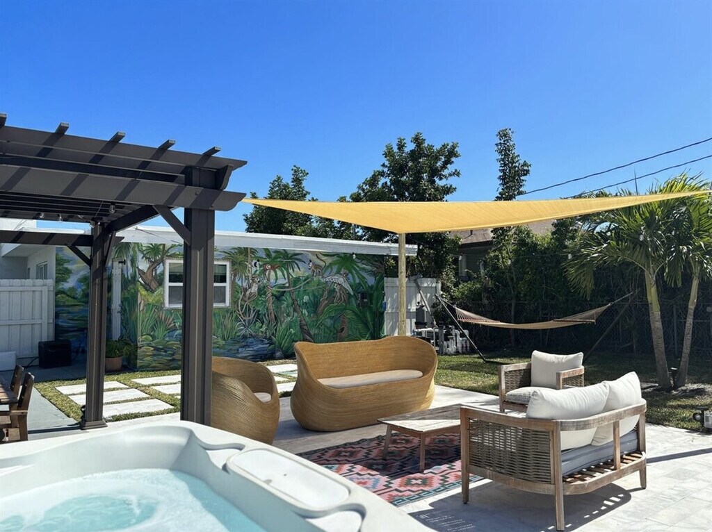 Welcome to the Monkey Cottage! Feel at home in this centrally located cottage in Lake Worth Beach. This charming home features three bedrooms and two bathrooms, complete with a brand new luxury pool, hot tub, and more. Enjoy the convenience of being within walking distance to Historic downtown Lake Worth and just a 5-minute drive to Lake Worth Beach. Additionally, you're only a 10-minute drive from Downtown West Palm Beach, Palm Beach Island, and Delray Beach. You'll find cozy beach, monkey, and jungle vibes throughout the property. The interior of this comfortably designed house features three cozy bedrooms, two with queen beds and a studio bedroom attached to the master bedroom featuring a single bed. The living room area has a wide, super comfortable couch that can seat four, a plush rug, and a stylish corner chair. There is also a large 55" TV and games for everyone to enjoy. The fully equipped kitchen is perfect for prepping meals together, with a table that seats three and two barstools just off the kitchen counter. Towards the back of the house, a peaceful office overlooks the backyard palm trees and landscaping, and this room also houses the washer/dryer in the attached closet. Step onto a spacious patio with a luxury pool, hot tub, outdoor dinner table, umbrella, chic hammock, grill, and outdoor games, all surrounded by tropical landscaping. The driveway includes parking for two vehicles, and there is additional free street parking in front of the property. Pet friendly, up to a maximum of two, with a fee of $100 for each pet. We offer airport pick-up and drop-off from Palm Beach International and Fort Lauderdale International. Need a car? Our Mercedes Benz is available to rent through Turo, with pick-up at Palm Beach International Airport or delivery to the driveway. This gorgeous beach town offers a calm atmosphere and is within walking distance to the charming downtown area with cute restaurants and shops. The neighborhood is peaceful and conveniently located near Boynton, Delray, and West Palm Beach. Minimum rental age is 25. Avoid wearing shoes in the house. No parties, events, or guests not included in the booking request. No smoking, vaping, or use of e-cigarettes. No firearms or weapons. Check-in is at 4pm, and check-out is at 11am. Quiet hours are observed from 10pm to 9am. For other house information, refer to the house manual. Registration Number: 000025425,