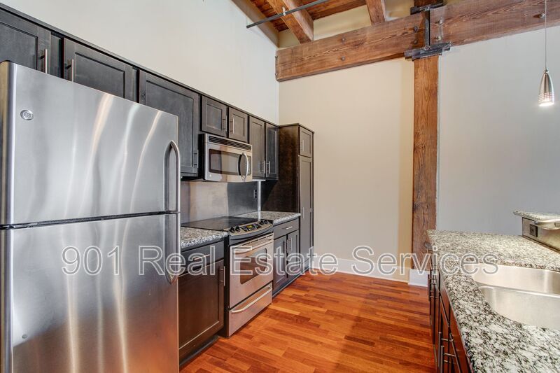 This 1 bedroom, 1 bathroom condo in The 4Twenty Building blends historic charm with modern finishes. This rarely available floorplan features hardwood floors, exposed brick and ductwork, and soaring ceilings with wooden beams that give the space its signature character. The open living and dining area features a Juliet balcony with views of the city and flows into a well-appointed kitchen with granite countertops, stainless steel appliances, and bold black cabinetry. The bedroom includes a spacious dressing room and a bathroom with a shower/tub combo. Washer and dryer included. Sorry, no pets. Located in the heart of the South Main District, The 4Twenty Building is a controlled-access community close to the farmer’s market, restaurants, shops, and art galleries. Amenities include a rooftop deck with sweeping city and river views, as well as gated side parking and street parking directly out front. SCHEDULE A SHOWING: Professionally managed by 901 Real Estate Services *Additional fees may apply. Please see below. Some photos may be virtually staged.* *Typical fees for approved applicants, not including security deposit: one-time admin fee of $250; one-time pet fee & monthly pet rent, determined by PetScreening per pet; any fees associated with specific communities or buildings - please ask the Property Manager for more information.* **Avoid scams: We do not post our properties on Facebook Marketplace or Craigslist and will never ask you to pay anything through CashApp, Zelle, or Venmo.** Amenities: elevator, rooftop access, controlled access building, high ceilings, beautiful hardwood flooring, central heat & air, dressing closet(s), parking - gated