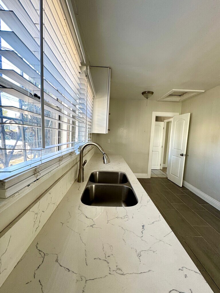 Housing Choice Voucher (Section 8) holders are welcome. Unit is ready for inspection.Bedrooms: 1Bathrooms: 1Square Feet: 610Lease Type: Long-termUtilities: Per lease termsSection 8: AcceptedParking: two assigned spacesCharming and updated 1-bedroom, 1-bath bungalow-style unit near USC. This 610 sq ft residence features vinyl flooring throughout the house with a bright living area that has a large mirrored coat closet as well as AC window unit. The kitchen includes a refrigerator, stove/oven, ample cabinet space, and updated quartz-style countertops. The well-lit bedroom boasts both a walk-in closet and ensuite bathroom. The bathroom includes updated tile, a full tub/shower, and window for ventilation. The property is equipped with passcode security gates, motion enabled exterior lighting, and 24 hour video surveillance. This quaint home is well maintained with clean walkways, landscaped outdoor areas, and a quiet courtyard setting.