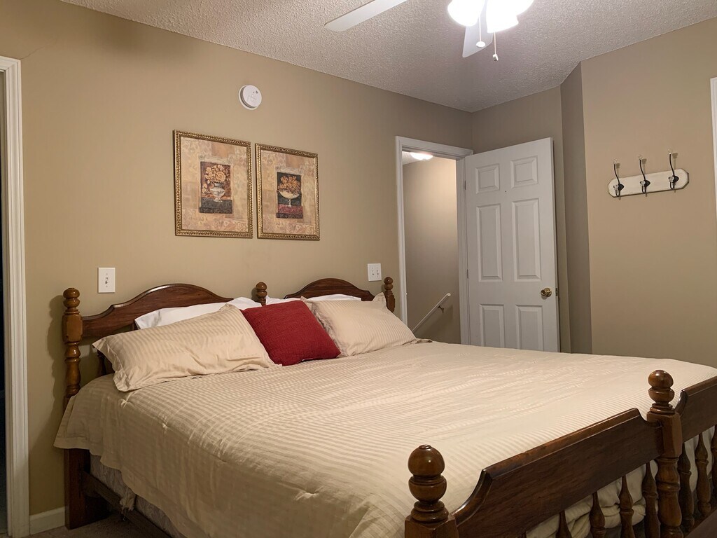 This unit is a 3 bed/2 bath condo on North Donahue. The first room is a living room with a bar separating it from the kitchen. There is a bedroom down the hall with an en-suite bathroom. There is a half bath downstairs accessible in the hallway next to the kitchen. Upstairs is a landing with the laundry room and two more bedrooms. The upstairs bedrooms share a jack-and-jill style bathroom. The unit comes with parking. Let us know if you have any questions!