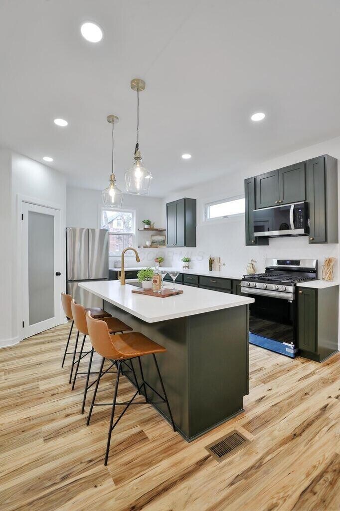 Live just minutes from Downtown in this stylish Franklin Park home. It features new LVP floors, an open living area with an electric fireplace, and a modern kitchen with quartz counters and stainless steel appliances. Upstairs has 3 bedrooms and 2 full baths, plus a finished 3rd floor perfect for an extra bedroom, office, or hangout space. You'll love the fenced yard, garage, and easy access to Franklin Park, East Market, and Downtown Columbus. October Special: Move in this month and get your first month free!