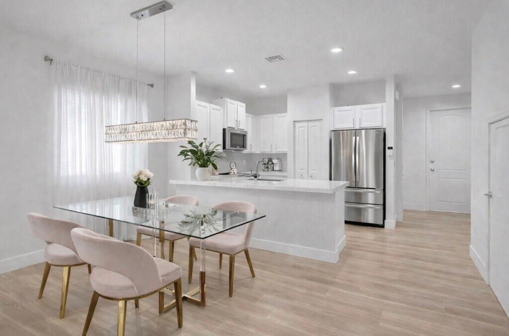 Your serene CORNER UNIT townhome is nestled within the Lakefront Eastside Village Community, offering a peaceful retreat in the heart of Oakland Park. Designed for comfort and relaxation, the home features 3 bedrooms & 2.5 bathrooms, including a convenient 1st floor 1/2 bath. The kitchen showcases quartz countertops and stainless steel appliances, creating a clean and calming space. Wood flooring flows throughout the first and second floors, while hurricane impact windows provide quiet comfort and peace of mind. The spacious primary suite offers a true sanctuary with a walk-in closet, and the private back patio invites outdoor relaxation. Ideally located near shopping, dining, and entertainment, and just minutes from the beach, downtown Fort Lauderdale, and Wilton Manors!