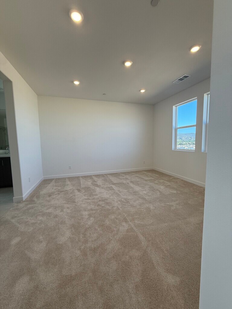 New 4BR/3.5BA Single-Family Home with no neighbor backyard available for rent at The Hill District, San Marcos Location: Directly across from Kaiser Permanente Hospital & UC San Marcos 3 Miles from Palomar Health Center Escondido. Flexiable Lease Options: 6-month or 12-month leases available. Experience upscale living in this stunning brand-new single-family home featuring: -- 4 bedrooms / 3.5 bathrooms including a guest suite -- Open-concept living & dining with plenty of natural light with big balcony with unobstructed view. -- Gourmet kitchen with quartz countertops & stainless steel appliances -- Luxurious owner's suite with spa-style bath and private deck. -- Energy-efficient with solar panels + battery backup. -- EV charging port and large driveway/garage. -- Beautiful backyard perfect for relaxing or entertaining. Enjoy a safe, convenient neighborhood just steps from major hospitals, universities, shopping, dining, freeways and MTS Train Station. 10 miles from Carlsbad Beach. Schools: Double Peak K-8 School, Discovery Elementary School within 2-3 miles from Property as additional school choices. This property is available for: -- Private Residents -- Corporate Lease Options (Insurance companies, medical offices, universities, corporate housing) Corporate Lease Option: Home can be delivered fully furnished with new furniture, landscaped modern backyard, and turnkey amenities. (Higher rent applies.) Layout & Features First Floor -- Private bedroom with en-suite bathroom (ideal for guests or home office) looking at backyard and open area. -- New Modern backyard with unobstructed view through glass overlooking open space/future park. Second Floor -- Spacious open-concept living & dining area -- Large balcony with open views great for entertaining -- Modern kitchen with quartz countertops, stainless steel appliances, and ample cabinetry -- Half-bathroom conveniently located on this level Third Floor -- Owner's suite with spa-inspired bathroom, dual walk-in closets & private deck overlooking the mountains. -- Two additional bedrooms with shared hallway bathroom (dual vanity + separate shower/toilet) -- Separate Laundry room with brand-new full-size washer & dryer Additional Features -- Attached 2-car garage with 2 car driveway. -- Solar panels with battery backup -- 240V EV fast-charging plug -- Low-maintenance modern backyard & front yard landscaping. -- Excellent schools nearby (Elementary, Middle & High School) -- Modern new backyard with unobstructed view of open space/future park. Community Amenities (Coming Soon) -- Resort-style swimming pool (beach entry + swim lanes) -- Spa & lounge areas -- State-of-the-art fitness center -- Multi-purpose clubhouse with full kitchen Location Highlights -- Directly across from Kaiser Permanente Hospital , UC San Marcos and 3 miles from Palomar Hospital Escondido. -- Quick access to freeways, shopping, dining, and entertainment. -- Safe, family-friendly neighborhood Lease Terms -- 6 months and 12 months. -- One-month rent deposit + first month's rent -- Proof of stable income & credit history required -- Rental insurance mandatory -- Small pets allowed (additional fees apply) -- Smoke-free property -- Tenants will pay for utilities: gas, electricity, water, sewer, trash and internet