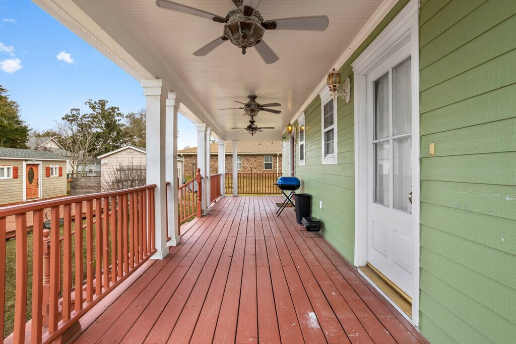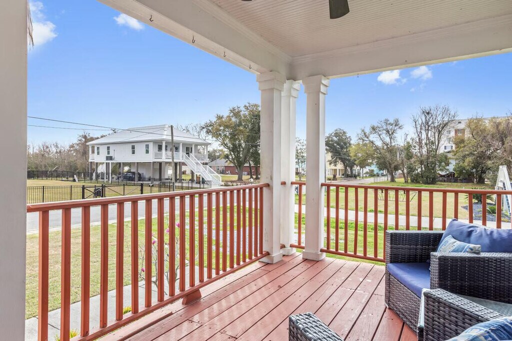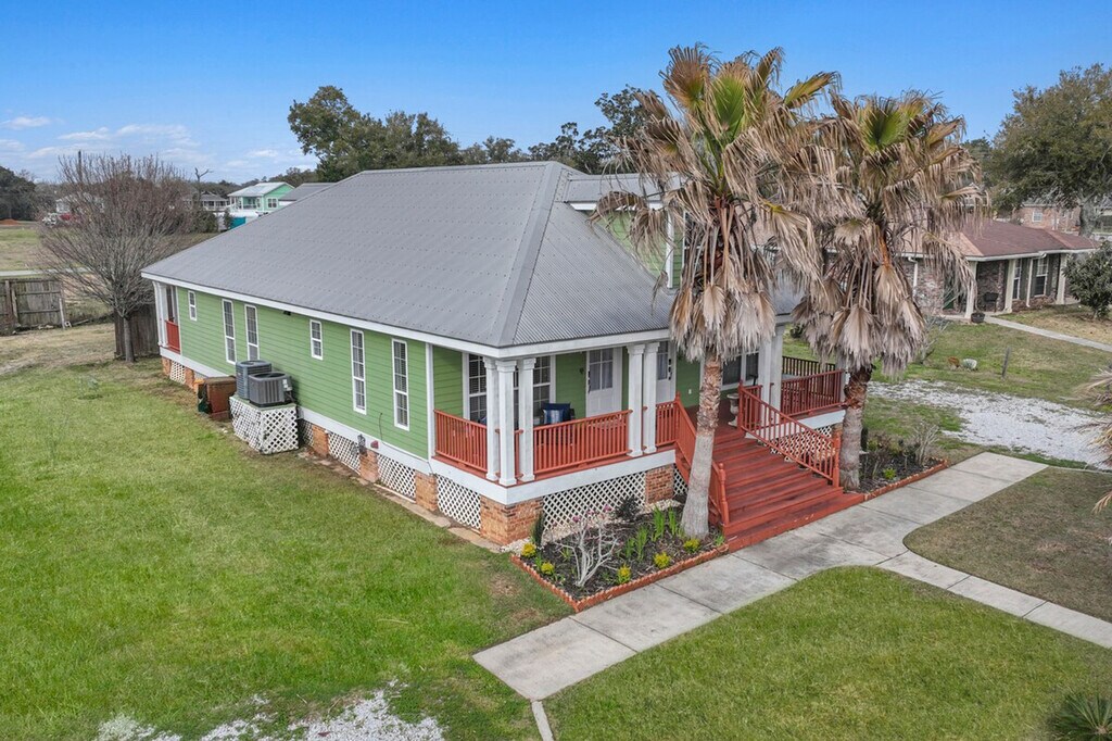 The advertised rate of $13,163/month is the lowest available price, based on a 30 day(s) stay with a move-in date of August 16, 2026. Rates vary depending on the duration of stay, season, and other parameters. For exact pricing and additional pricing components, please visit our website and enter your desired move-in and move-out dates. The rate is applicable when billed upfront; it can be higher if billed in multiple payments. Escape to this coastal retreat villa, a private triplex just one block from the sand in Long Beach, MS. This listing includes all 3 units with 5 bedrooms and 4 bathrooms, making it perfect for large families or group getaways. Feel at home in this exclusive beachside compound. This two-story green coastal home is designed for comfort and connection. This rental encompasses the entire triplex, offering a unique set-up for large groups while allowing for private spaces. The property is comprised of three distinct, fully furnished units: The Shell, a cozy 1-bedroom, 1-bathroom retreat; The Wave, a spacious 2-bedroom, 1-bathroom unit; and The Breeze, a 2-bedroom and 2-bathroom unit. Inside, you'll find bright, airy living spaces filled with natural light, multiple fully equipped kitchens for preparing group meals, and clean, functional bathrooms. Outside, you can unwind on the large porch, furnished for relaxing and soaking in the coastal atmosphere. Guests will have exclusive and private access to the entire triplex property, which includes all three individual units: The Shell, The Wave, and The Breeze. You are also welcome to enjoy the shared outdoor spaces, including the large front porch. [SI]