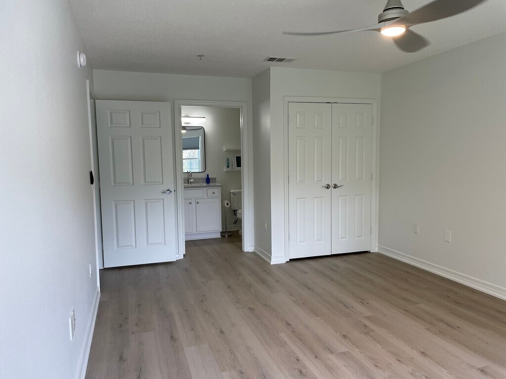 COMPLETELY remodeled condo in the Florida Club community! Every inch of this 2nd floor, 812 square foot, 1 bedroom/1 bathroom condo has been thoughtfully updated. You'll enter into the newly painted spacious dining room/living room combination with modern lighting. LVT flooring flows seamlessly throughout the unit. The kitchen area has been fully updated with fresh white cabinets and gorgeous gray quartz countertops. New appliances include: Dishwasher, oven/cooktop, refrigerator, and microwave. A stainless workstation sink includes a water filtration system for fresh drinking water The attached laundry room comes complete with new full-sized washer and dryer. Storage space is plentiful with wood shelving in the laundry area. A closet area off the kitchen also has been fitted with wood shelving to allow more space for pantry items. The living area is naturally well lit and spacious enough for all your entertaining needs. A screened balcony area overlooking the lovely community pool can be accessed through the large sliding glass door. There is an additional enclosed storage area for bikes, beach chairs, etc., off of the screened balcony. Need even more storage? You'll find it in the huge bedroom with an oversized closet. The attached bathroom enjoys the same white cabinets and quartz countertops as the kitchen. You'll have ample hot water with a new 38 gallon hot water heater. Modern lighting and mirror completes the look. The Florida Club complex is located in a highly desirable area close to Eglin AFB and Destin beaches, restaurants, and shopping. Moving in is a breeze with the elevator on site. Professional, well-tended landscaping highlights the attractive common areas. Amenities include community pool, fitness center, sauna, clubhouse, picnic area, car wash area. Cable and internet are included in rental price. No pets allowed. Renter must provide proof of renter's insurance.