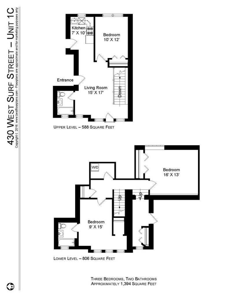 Modelo: 1C - 428 W Surf St$3,8953 Dormitorios, 2 Baños, 1395 sq ftDisponible Ahora![]()