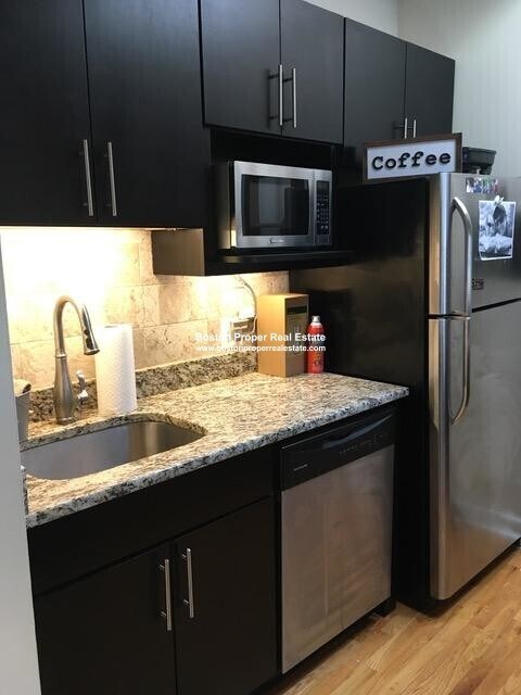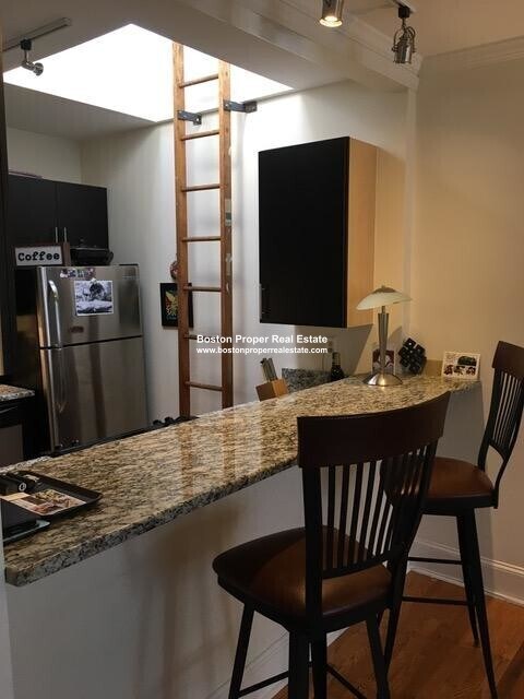 Techos altos, chimeneas decorativas, lavaplatos en la cocina y pisos de madera en toda la suite. Aproximadamente 75 metros cuadrados, una amplia sala de estar frente al frente y un dormitorio frente al sur. Gran sol y vistas. Edificio de piedra marrón en la hermosa Beacon St. A solo unas cuadras de todos los increíbles restaurantes y tiendas de Newbury y Boylston St. Fácil acceso a las paradas de Copley e Hynes T en Greenline.