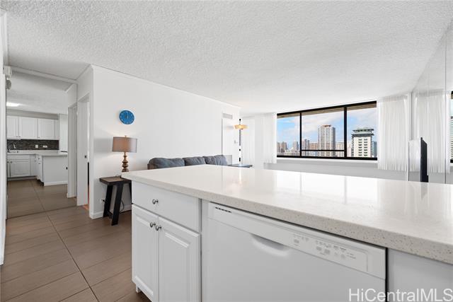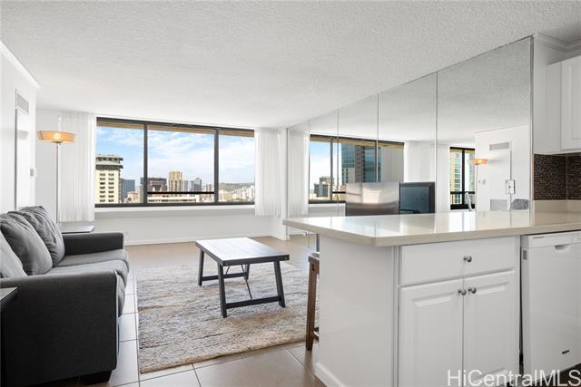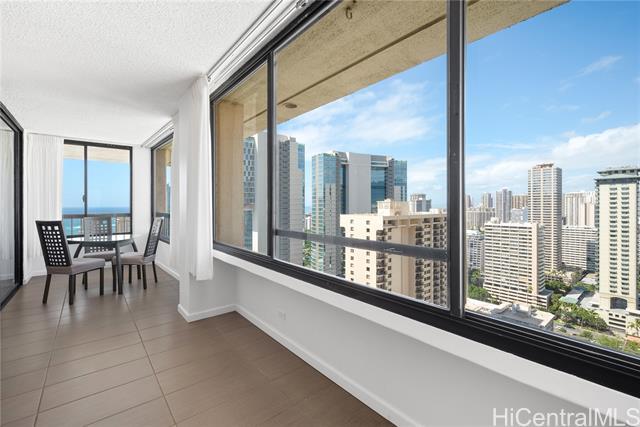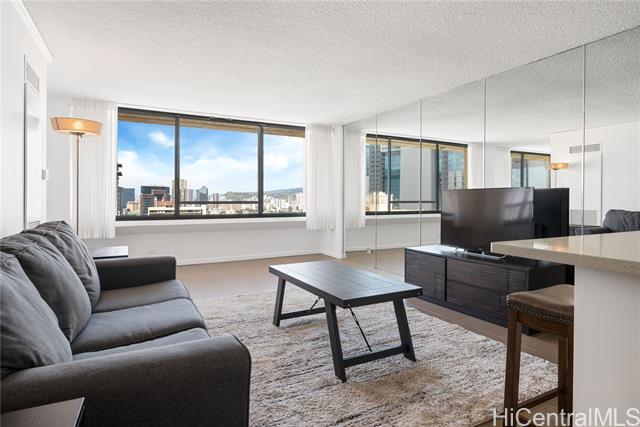 Welcome to Aloha Towers! This beautifully renovated Pent House 1-bedroom, 1-bath condo offers the perfect blend of comfort and convenience, complete with central A/C and 1 covered parking space in the garage. The unit features tiled flooring in the living room, vinyl laminate in the bedroom, and a modernized kitchen. Enjoy your morning coffee while taking in ocean views from your enclosed lanai, which adds even more space to your living area. The building boasts resort-style amenities: Sauna & whirlpool, BBQ areas & party spaces, ample guest parking, 24/7 security, Resident Manager on-site, Car wash area, trash chute, and bike storage. Plus, there’s a full sundries store conveniently located just off the lobby! You’ll love being within walking distance to Waikiki Beach, Royal Hawaiian Shopping Center, International Market Place, and a variety of restaurants and shops. Experience all that Waikiki has to offer right at your doorstep. Utilities included: Central AC, Electricity, Gas, Hot Water, Internet/Cable, Sewer/Water - Furnished rental. Sorry no pets/no smoking. Contact to schedule a showing or if you have any questions.