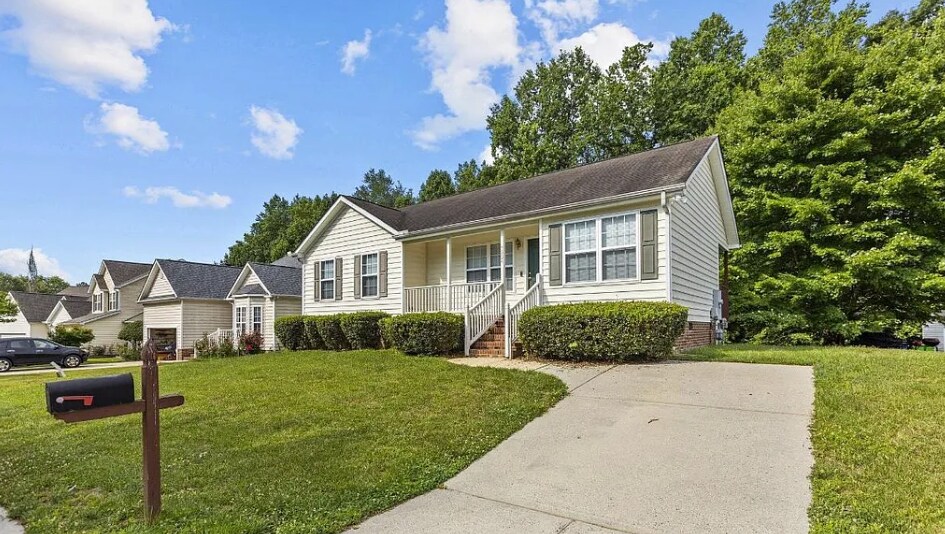 Welcome to this stunning ranch-style home situated in the heart of a charming Raleigh neighborhood within the Triangle area. Boasting three bedrooms and two full baths, this home offers both comfort and style. The family room is thoughtfully designed, allowing an abundance of natural light to flood in, creating a warm and inviting atmosphere. The adjacent kitchen, complete with a dining area, provides a perfect space for cooking and entertaining. Adding to the appeal are the beautiful vinyl floors throughout the main floor, adding a touch of elegance to the living spaces. Ample backyard room for any outdoor events. Conveniently located, this property offers easy access to I-540, Wake Forest, Triangle Town Center, North Hills, Walmart, Target and Poyner Place Shopping Center. All photos of the home are staged, furniture is not included. All appliances are new, including refrigerator, washer and dryer and AC unit.