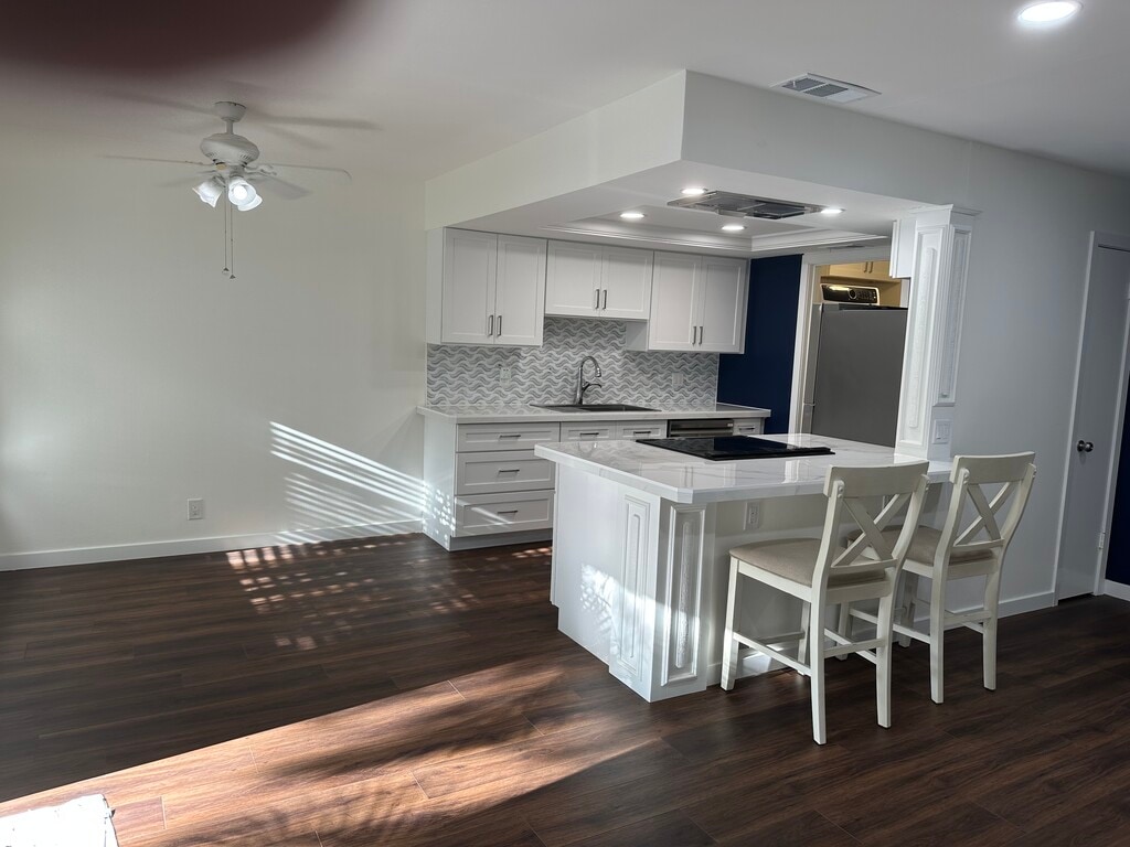 This villa is newly remodeled, everything has been replaced. Brand new floors, kitchen, bathroom. This unit is just behind the Jupiter Hospital, if you work there, it's a very short walk to work. This beautiful space will make you very happy. There is a 65inch flat screen hung on the wall. There is a soaking tub in the bathroom, all appliances are brand new or been purchased within the last year.