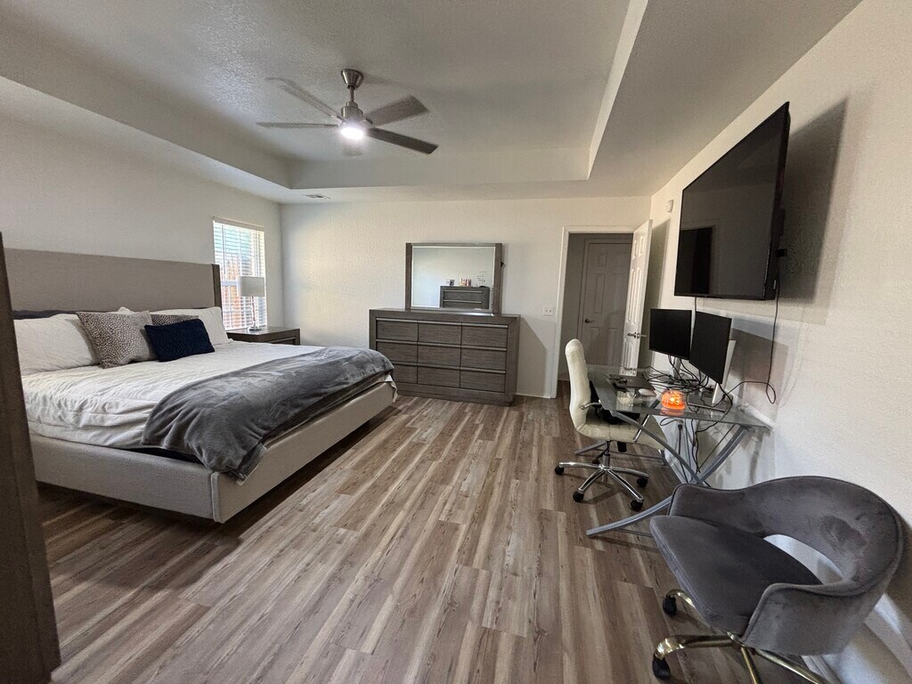 Pristine single family home located just minutes from schools, shopping, and dining. Spacious 3 bedroom 2 bath home with a 2 car garage offers LVP flooring throughout, granite countertops, cozy corner gas fire place, & oversized eat in kitchen with pantry. Large primary bedroom. The on-suite features dual vanities and closets. Enjoy entertaining in the inviting and spacious fenced back yard with patio area.