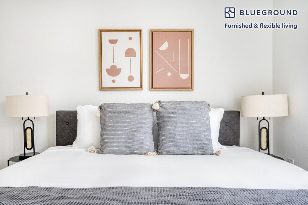 Show up and start living from day one in Emeryville with this stylish one bedroom Blueground apartment. You’ll love coming home to this thoughtfully furnished, beautifully designed, and fully equipped Emeryville home with stunning balcony views over the city. (ID #SFO1027) The advertised rate of $2,960/month is the lowest available price, based on a 12 month(s) stay with a move-in date of January 30, 2026. Rates vary depending on the duration of stay, season, and other parameters. For exact pricing and additional pricing components, please visit our website and enter your desired move-in and move-out dates. The rate is applicable when billed upfront; it can be higher if billed in multiple payments. Brokers are welcome to reach out. Were you looking for an unfurnished lease? Try Blueground instead and upgrade from unfurnished to furnished living: - Furnished at rates comparable to unfurnished - No setup or furniture costs - save thousands - Move-in ready - save time, just bring your suitcase Designed with you in mind Thoughtfully designed with bespoke finishes, modern furnishings, and a fully equipped kitchen, you’ll enjoy that “I’m home” feeling with this Blueground apartment. Whether you’re lounging in your pretty living room streaming the latest and greatest entertainment on the smart TV or premium wireless speaker, or getting some well-earned rest on the superior quality mattress with luxury linens, you’ll fall in love with everything this Emeryville apartment has to offer. This apartment also offers in-apartment laundry. Sleeping arrangements King Bed, 70.8in/180cm Amenities Building amenities unique to this one bedroom apartment include an on-site: - Dryer - Elevator - Swimming pool - Washing machine - Parking - Pets allowed - Rooftop BBQ Arrival and ongoing support The entire apartment is yours to enjoy! Throughout your stay, you’ll have access to our Client Experience team through the Blueground App. You can schedule additional cleanings, submit maintenance requests, and view our neighborhood recommendations with just a few taps. We’ll share all details upon confirmation of your stay. Ideally Located This furnished apartment is located in Emeryville in Alameda County. The city is set on the San Francisco Bay nestled between Berkeley and Oakland, a prime Silicon Valley location. Pixar is headquartered in Emeryville, along with Electronic Arts' Maxis Software division, LeapFrog, MobiTV, and Sendmail. The city may be small, but there are plenty of places to eat, play, and shop right in town. Most residents use their cars to get around. Emeryville is set near the foot of the Bay Bridge for a quick drive into San Francisco, and also has great highway access. Other things to note Building amenities may have an extra cost. This Blueground apartment has flexible lease options, allowing you to book it for one month, a year, or more. Pets are welcome, though weight limits and breed restrictions apply and may incur fees. Parking is offered based on availability and is subject to a fee. We take great pride in ensuring every photo displayed is shot in our own units with our actual furnishings. That said, we regularly refresh our decor and furniture arrangement, which may differ from what’s pictured. Also note - Other apartments in this building are undergoing renovations, and you may hear construction noise inside your apartment from time to time - Ongoing construction in close proximity; construction sounds may occasionally be heard [SI]