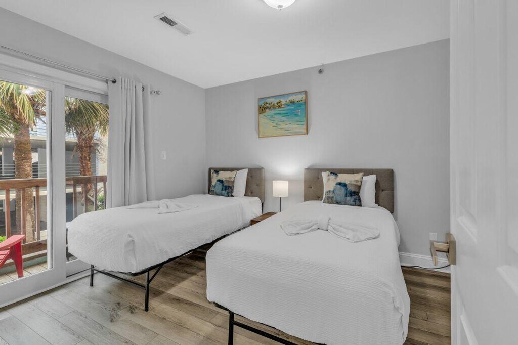 Welcome to Island Palms, a stunning vacation rental in the heart of North Myrtle Beach, SC. This beautifully appointed space is adorned with coastal-inspired decor, and the shimmering Atlantic Ocean is just steps away. The master suite is a private oasis, featuring a plush queen-size bed, a soothing color palette, and an en-suite bathroom for added convenience. The second bedroom offers cozy accommodations with twin beds, ensuring a restful night's sleep for all guests. Step outside onto the private balcony and enjoy front-row seats to breathtaking sunrises. Whether sipping your morning coffee or basking in the golden hues of sunset, this outdoor oasis is the perfect spot to relax and recharge. The kitchen is a culinary haven, equipped with modern appliances, sleek countertops, and ample cabinet space. Prepare delicious meals to savor with loved ones in the comfort of this coastal retreat. This apartment also features air conditioning, a washer/dryer, and internet/Wi-Fi access. Enjoy the swimming pool and outdoor pool for a refreshing dip. Free parking space is available at the property, with the spot located under the unit. The maximum capacity is one car. Island Palms is conveniently located near pristine beaches and vibrant dining and entertainment options. Whether you're seeking a relaxing beach getaway or an adventure-filled vacation, this coastal haven promises an unforgettable experience for discerning travelers. Local attractions include Cherry Grove Pier, Barefoot Landing, T.I.G.E.R.S. Preservation Station, House of Blues Myrtle Beach, and The Carolina Opry Theater. Smoking is prohibited in the unit and on the balcony, with any violation incurring a $200 fine plus cleaning costs to remove smoke odors. No parties or events are allowed, with violators charged a $200 fine. Pets are not allowed. A late check-out penalty starting from $500 will be applied if the unit is vacated later than the check-out time. It is strongly forbidden to disconnect, reset, or make any changes to the Wi-Fi router settings. A $75 fee applies for cleaning requests. [SI]