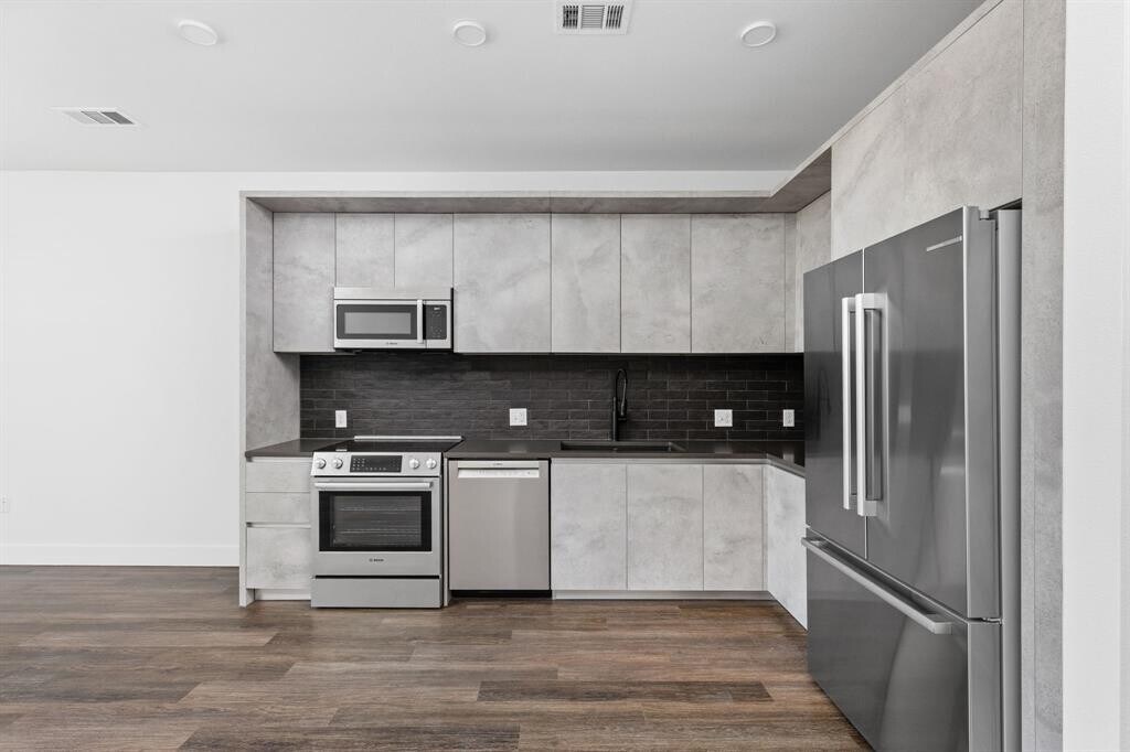 The Austin lifestyle is all here! This brand new 2 bedroom 2 bath condo has a modern design and timeless finishes including quartz countertops, Bosch appliance package, wide plank wood vinyl floors, Clean design in bath with a walk-in- shower with honeycomb and subway tile. There is a huge walk in closet for storage and soft close Italkraft cabinetry throughout. Comes with a stackable washer dryer too. Building has all amenities including a gallery style lobby. 24 hour security, a library lounge, courtyard with huge pool, outdoor kitchen, gym, fire pit. Excellent location with walking to restaurants, clubs, shops and minutes from downtown Ausitn and airport. This is the best in Austin living! MLS ID 7185258